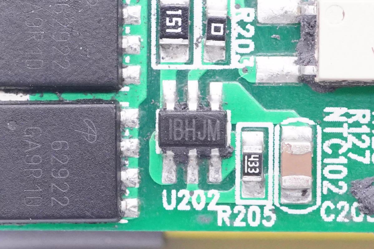 PCB板背面涂有大量黑色硅膠幫助芯片導熱。