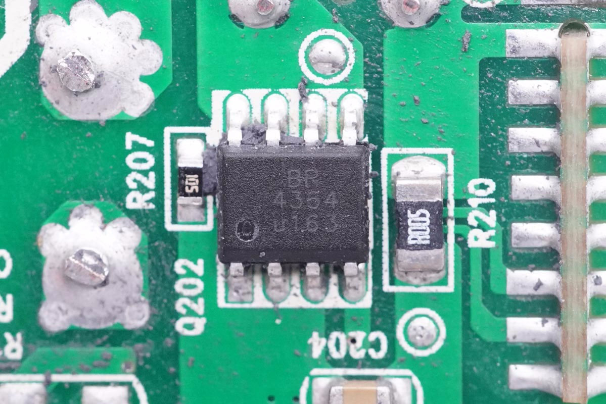 輸出VBUS開關管特寫,絲印4354,右側是輸出電流檢流電阻。