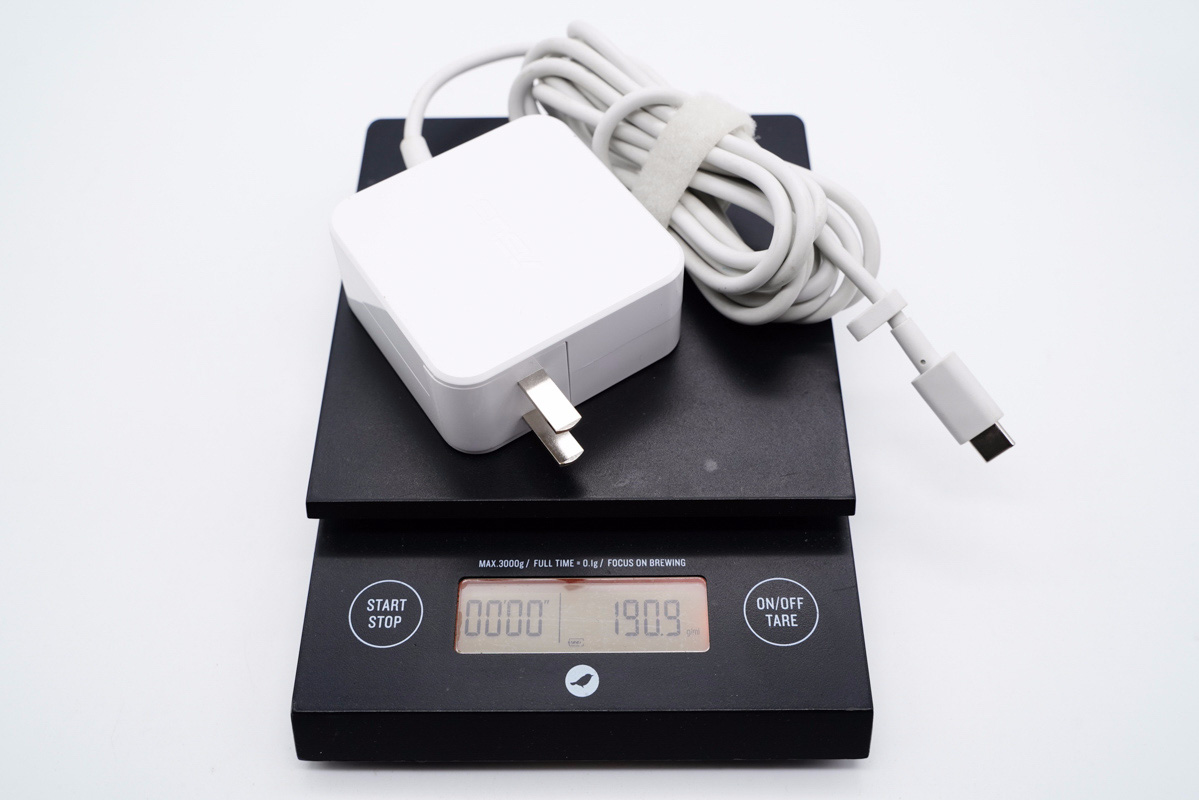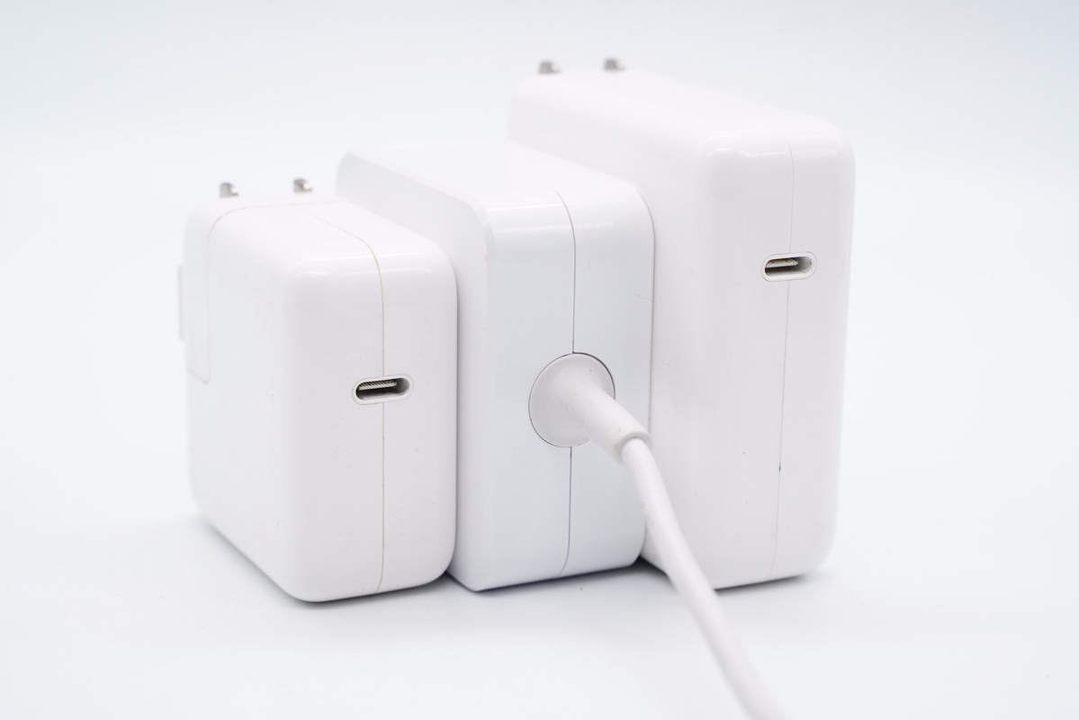 和蘋果30W充電器(左)以及蘋果61W充電器(右)直觀對比,功率密度和蘋果充電器差不多。