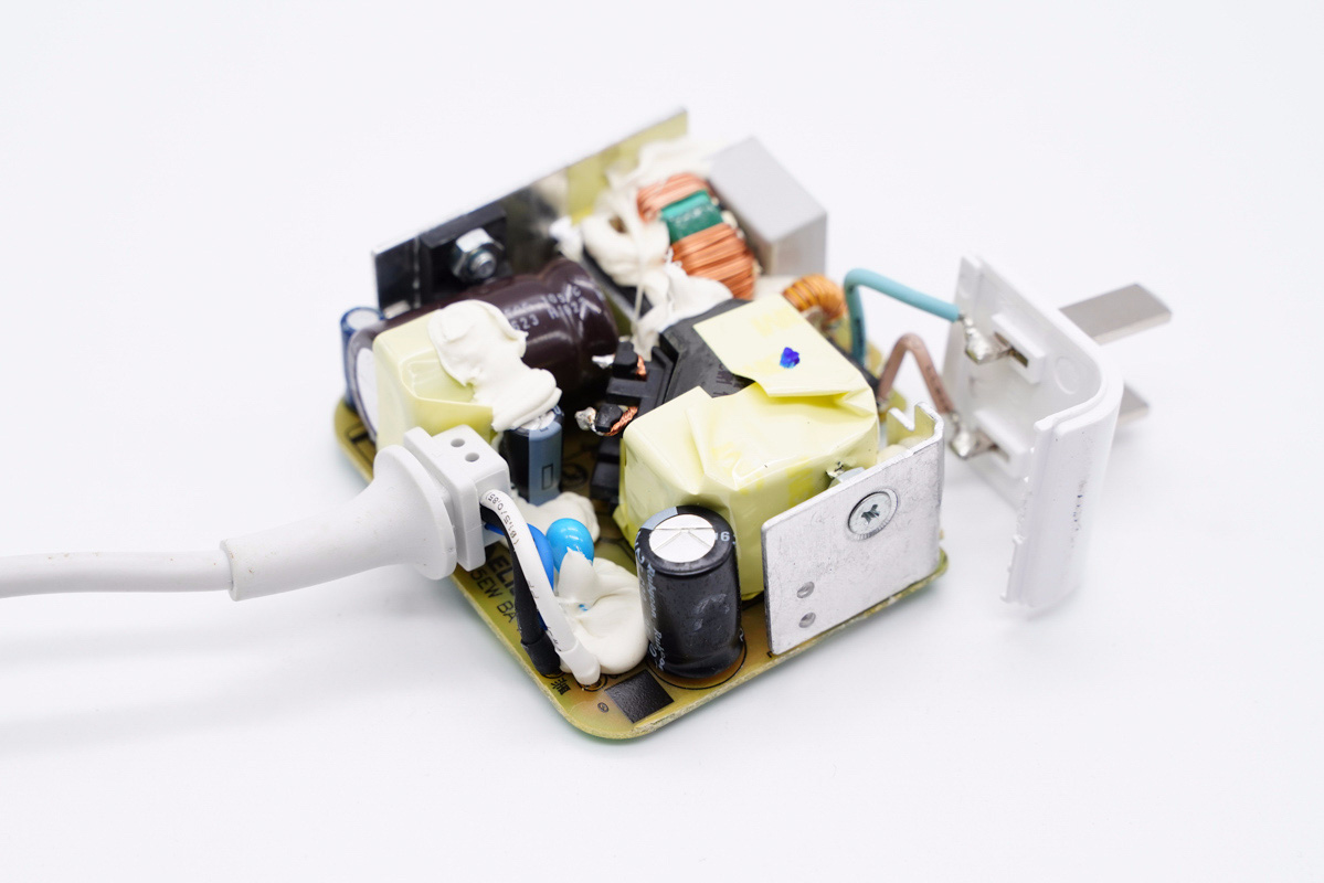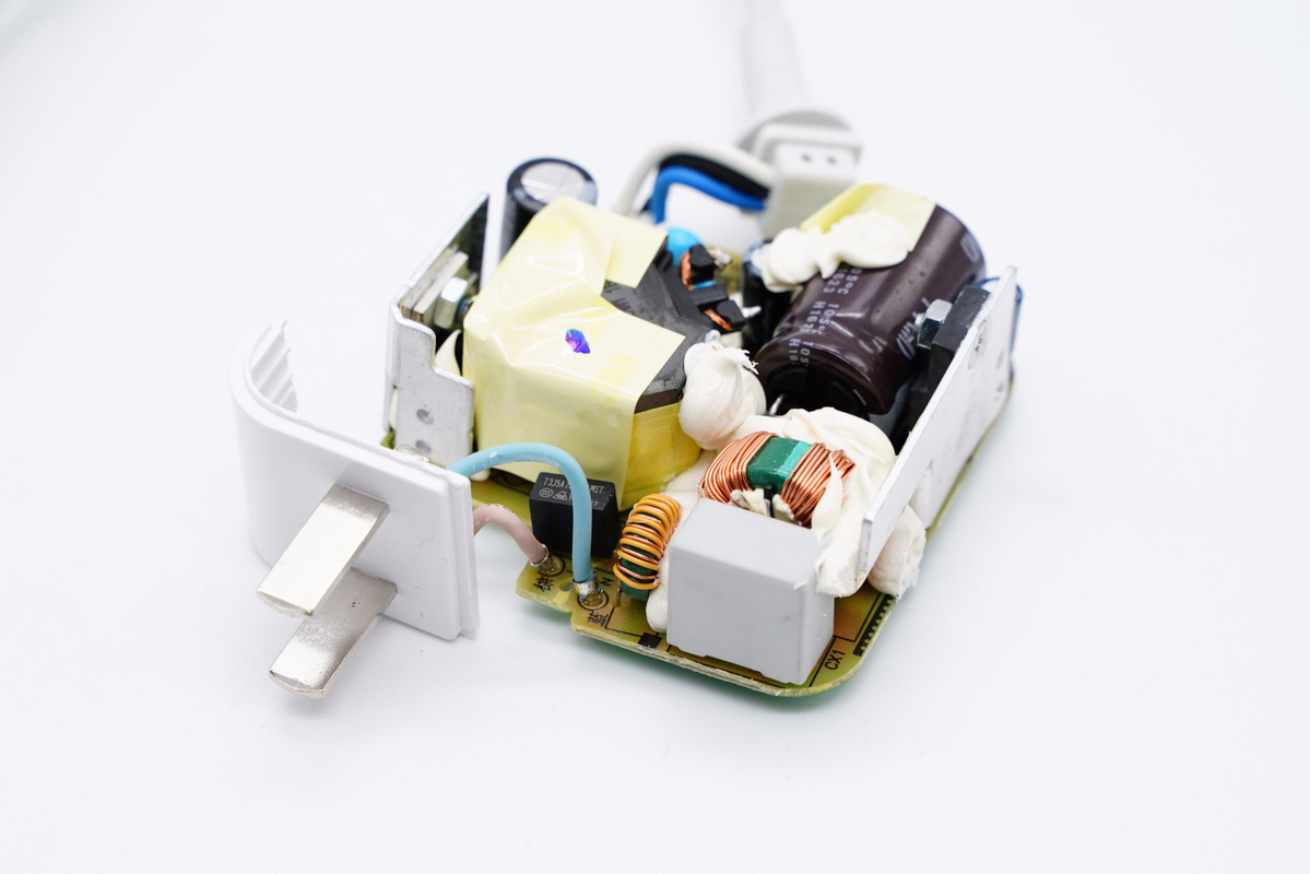 充電頭網通過拆解了解到,充電器內部空間充足,元器件分布相對稀疏,不易積熱,同時高壓MOS管和次級整流肖特基發熱器件還配有專門的散熱片。此外采用東芝高壓開關管,尼吉康、紅寶石知名日系品牌電容進行輸入輸出濾波。這款電源由于輸出電流不大,使用肖特基二極管整流。電源由臺達代工,用料非常扎實。