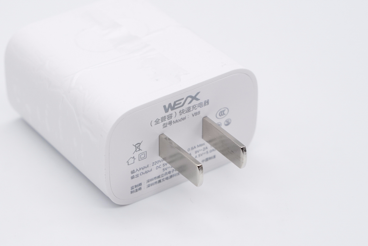 隨著華為手機登頂國內市場,市場對22.5W SCP快充充電器的需求量是很大的。為此深圳市威立訊電子有限公司便推出了一款22.5W快充充電器供客戶選擇,機身采用經典直板造型設計,風格十分精簡,同時還支持18W QC快充,使其適用范圍更廣。下面充電頭網就對其進行詳細拆解,看看產品內部設計用料如何。