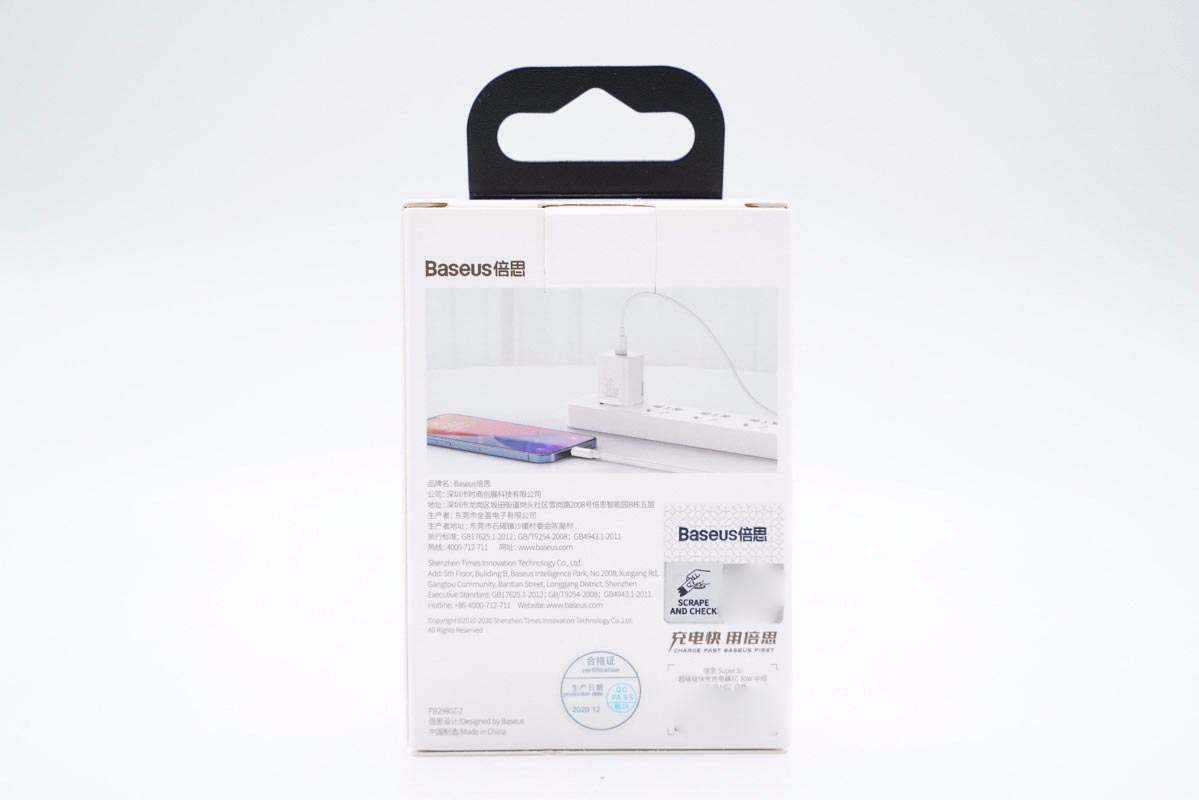 包裝盒頂部帶有掛鉤,正面中心是產(chǎn)品外觀圖,左上角黃色區(qū)域設(shè)有Baseus品牌,最下方設(shè)有Super Si等特性標(biāo)識。