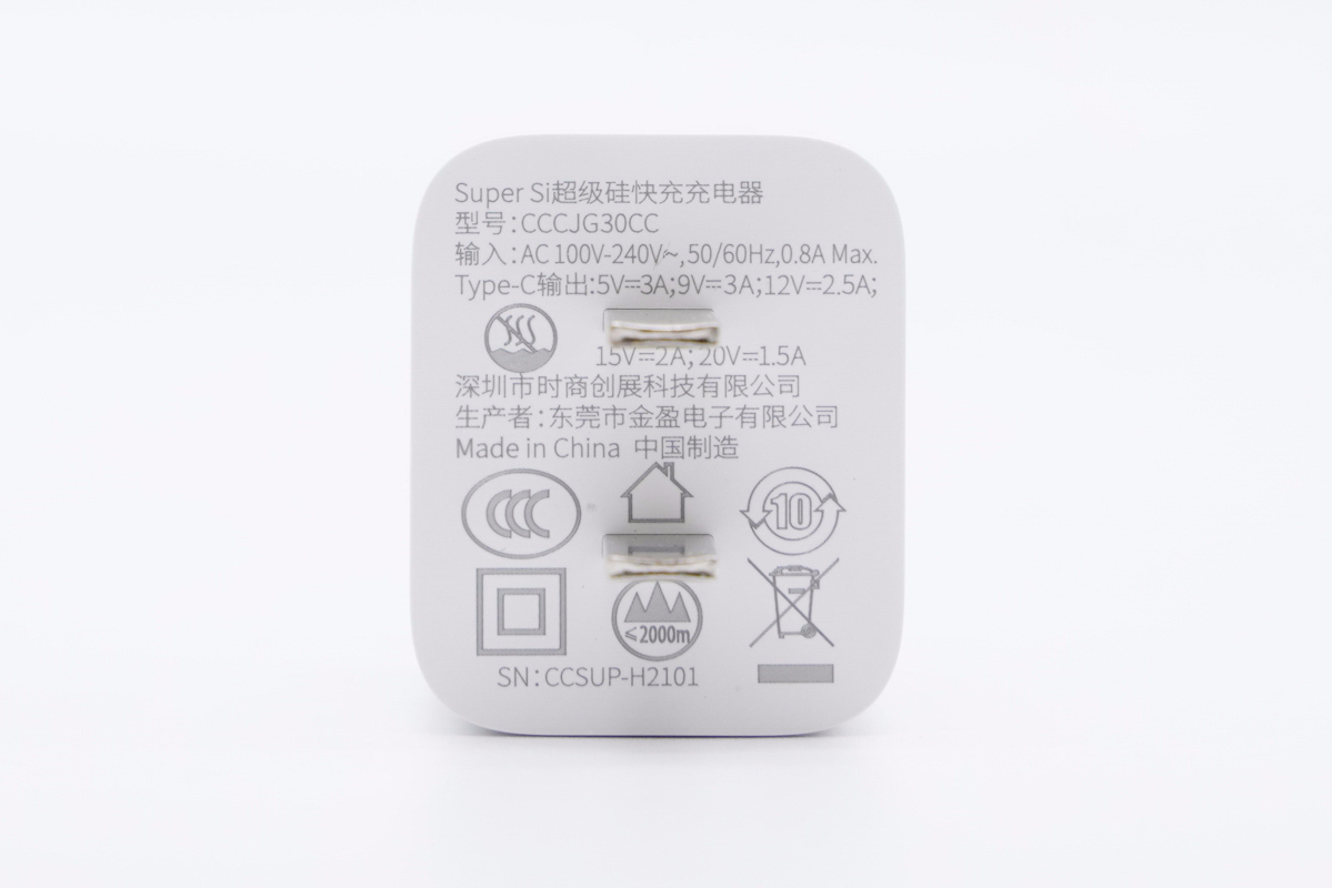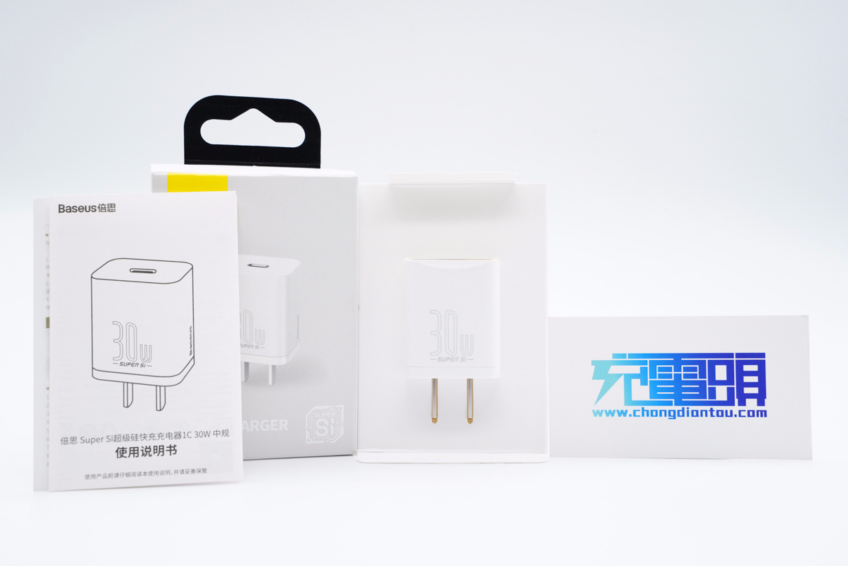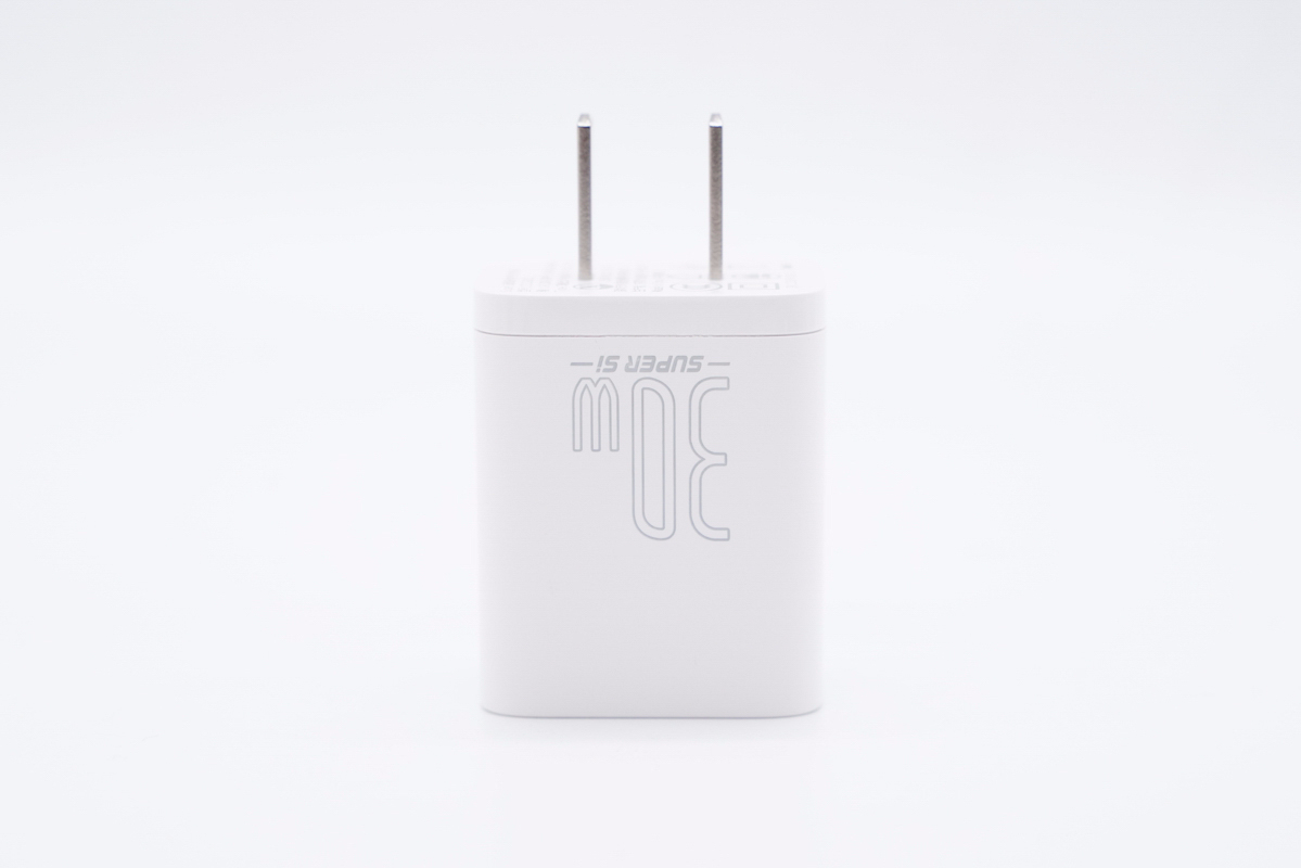 充電器采用同倍思已經(jīng)上市的20W超級硅迷你PD充電器一樣的外殼尺寸,同時提升10W的輸出功率,外面非常小巧。外殼采用倍思經(jīng)典的直板造型設(shè)計,機身表面啞光和亮面撞色設(shè)計,腰身各面之間過渡圓潤,其中正面印有30W SUPER Si字樣 。