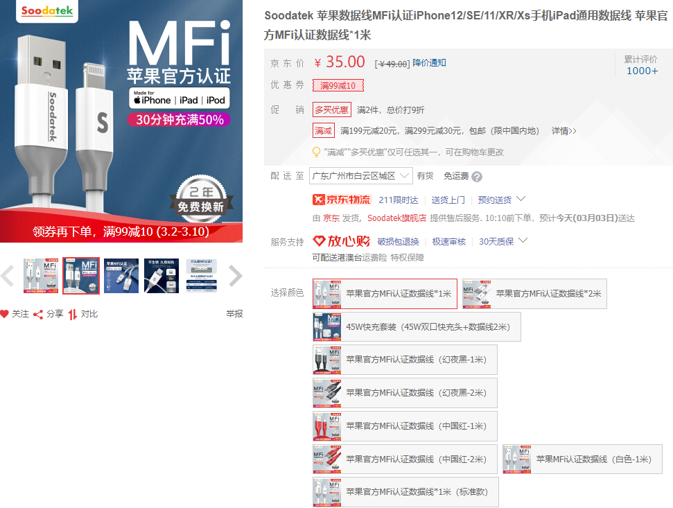 Soodatek的數據線系列銷量最高的是一條A2L線材,這讓天天喊著USB-C大勢所趨的小編有點驚訝,仔細想想也可以理解,一方面是價格優勢,一方面則是對大眾消費者來說USB-A接口和USB-C接口差別也不大,畢竟這條線搭配12W充電器速度也不是太慢。
