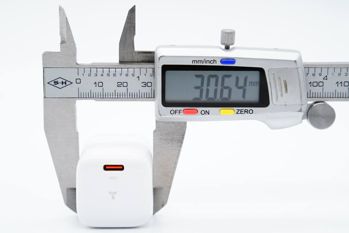使用游標(biāo)卡尺實(shí)測充電器機(jī)身高度為30.84mm。