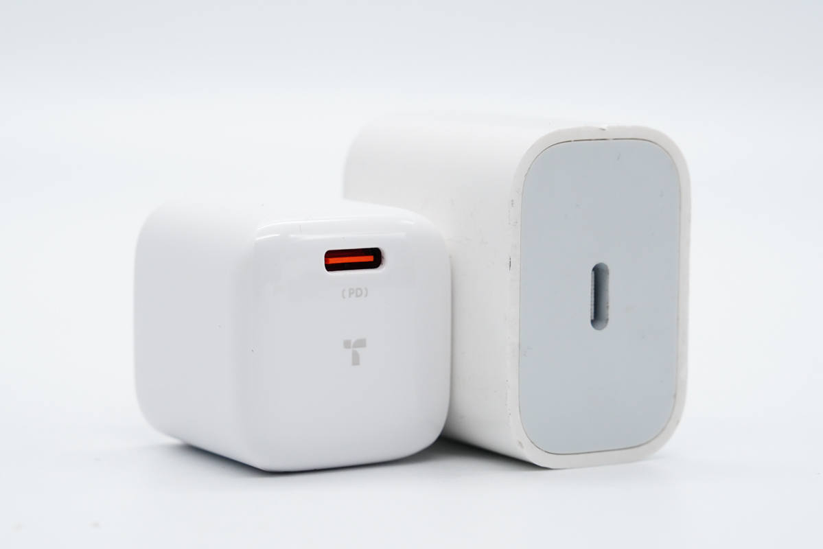 和蘋果20W充電器直觀對(duì)比,體積優(yōu)勢明顯。