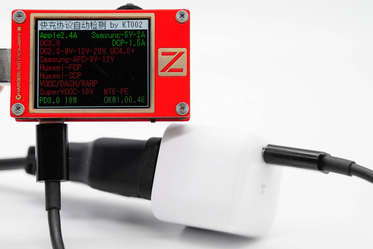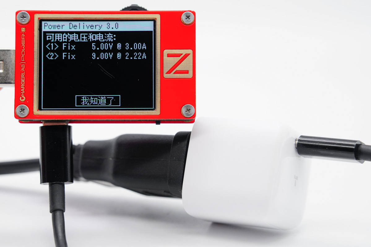 使用ChargerLAB POWER-Z KT002測得USB-C口支持Apple 2.4A、Samsung 5V2A、DCP和PD3.0協(xié)議。