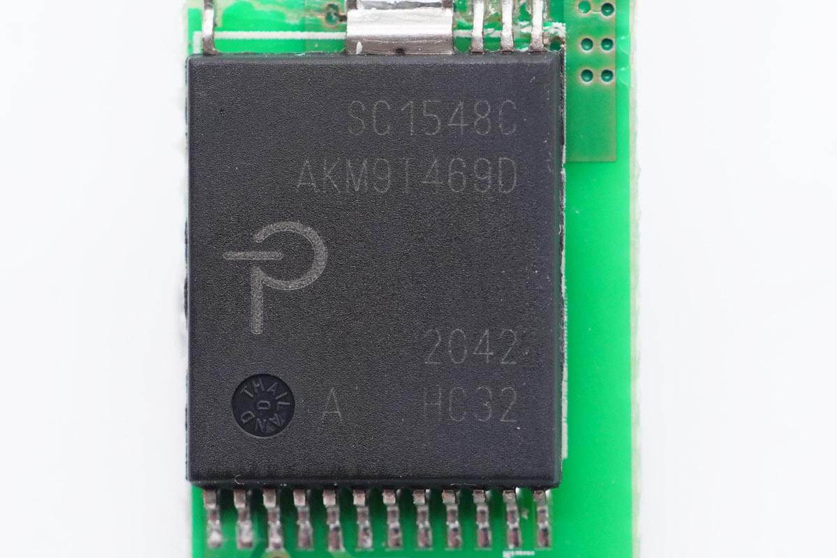 充電頭網(wǎng)通過拆解了解到,充電器內(nèi)部不僅采用了U型結(jié)構(gòu)設(shè)計(jì),還采用了PI高集成主控芯片SC1548C,對(duì)實(shí)現(xiàn)充電器小型化很有幫助。此外采用慧能泰USB PD3.0認(rèn)證協(xié)議芯片HUSB339,綠寶石電解電容進(jìn)行輸入濾波,固態(tài)電容進(jìn)行輸出濾波,整體用料不錯(cuò)。