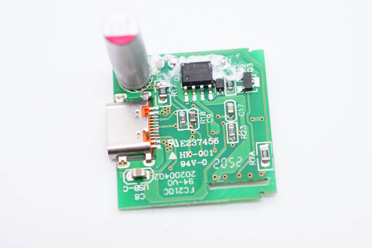 輸出端小板背面設(shè)有協(xié)議芯片和輸出VBUS開關(guān)管。