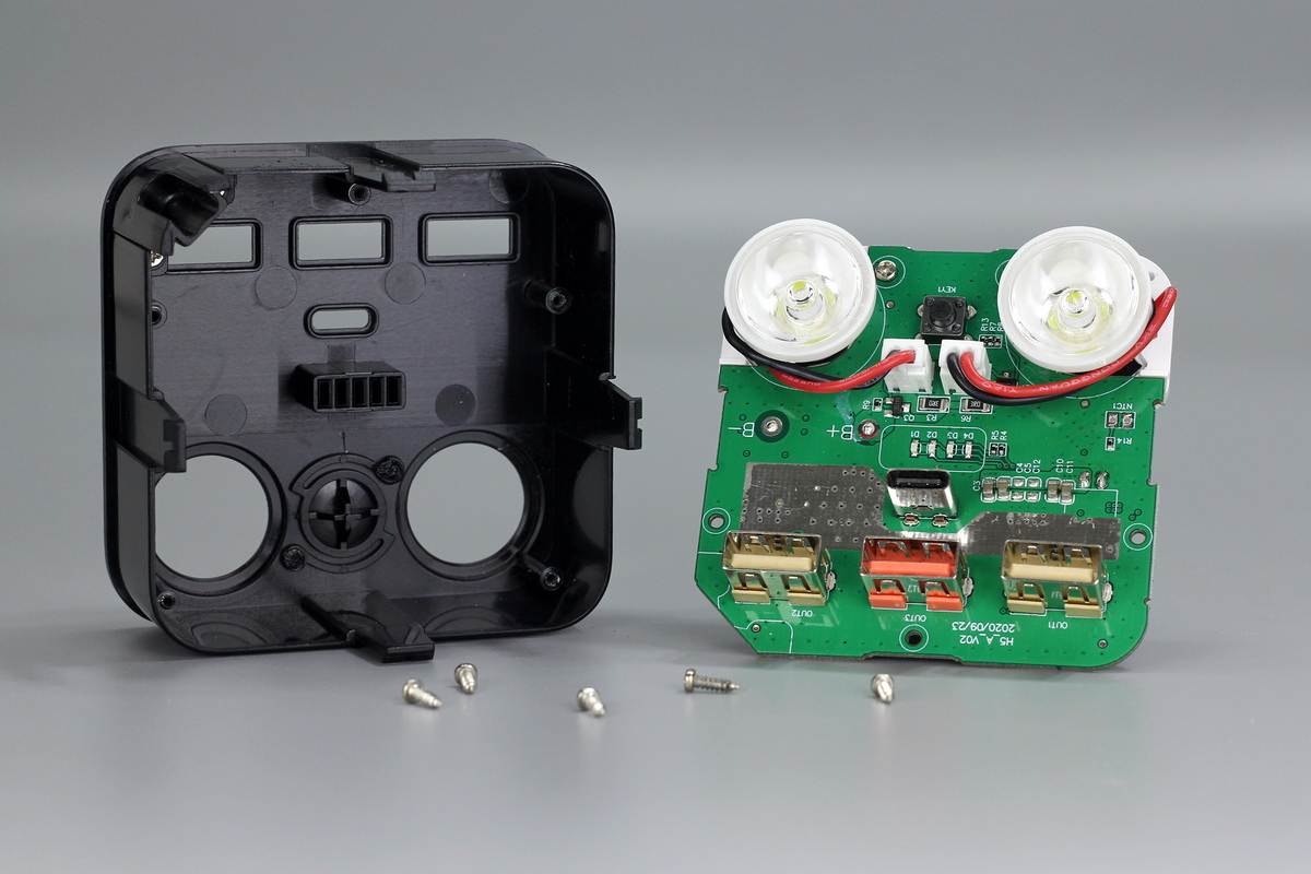 拆掉螺絲取下PCB板,照明燈導線采用插拔式設計,方便組裝。