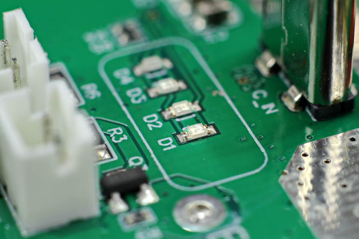 USB母座均垂直過孔焊接,LED照明燈插槽旁邊是電源鍵。