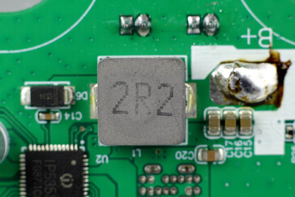 2R2電感特寫,配合英集芯IP5358進行升降壓實現充放電。