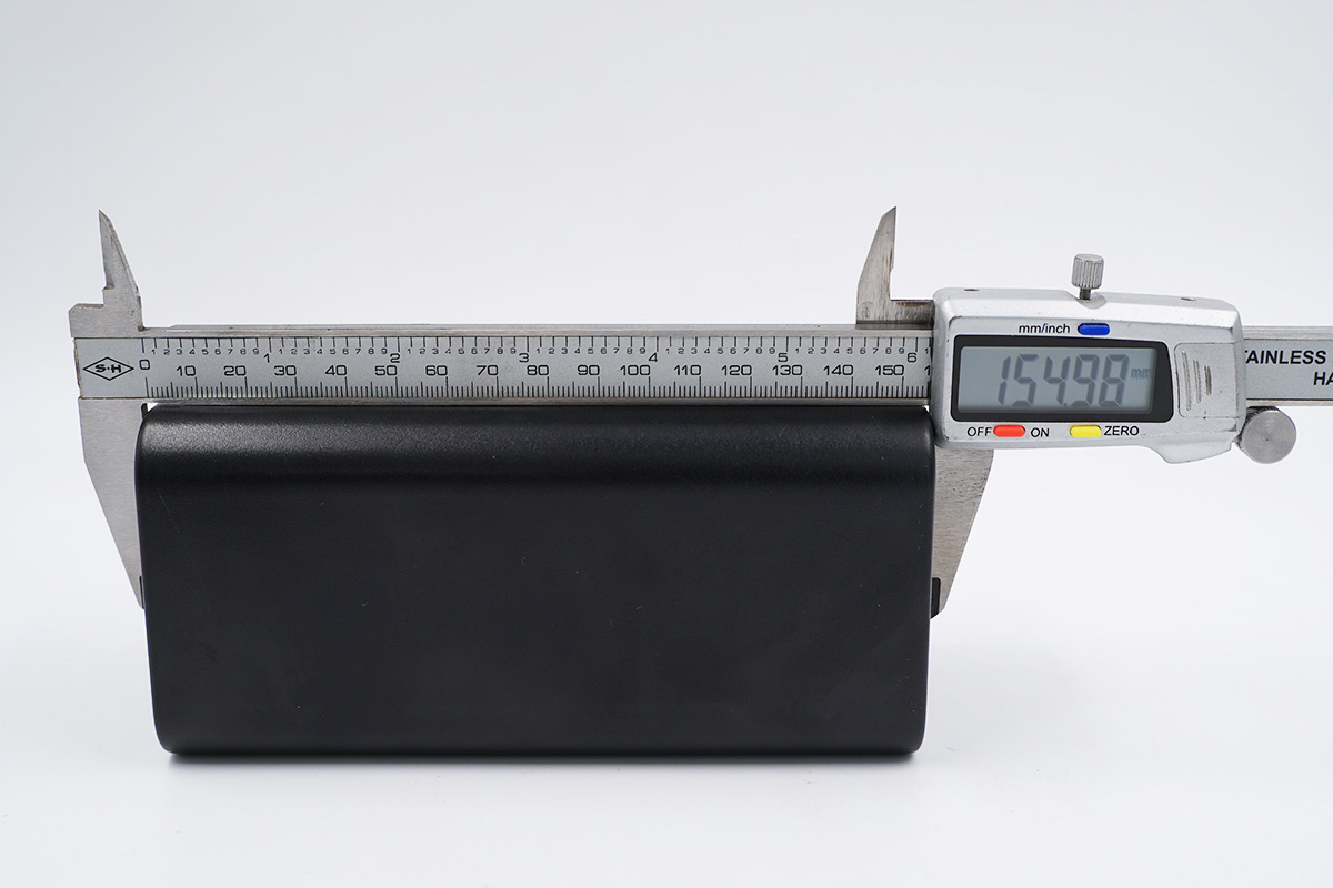 使用游標卡尺實測移動電源機身長度為154.98mm。