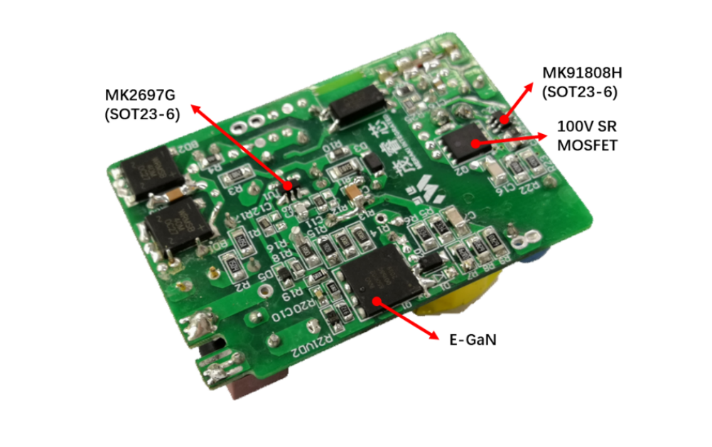 基于領先的高壓BCD模擬工藝平臺,茂睿芯已快速開發并量產了多類業界或國內領先的現象級電源管理芯片系列:業界超快(關斷延時10ns)的115V CCM 同步整流控制器MK1808;4A Source/Sink驅動電流的120V高側及低側驅動器產品MD18211;110V耐壓、待機小于100μA的同步降壓(Buck)轉換器芯片MK901X;以及110V電壓等級AC-DC PWM芯片MK2687。 最近,茂睿芯AC-DC PWM芯片系列又添新成員——采用SOT23-6極小封裝的高頻QR AC-DC PWM產品MK2697/MK2697G。其中MK2697外驅MOSFET(SJ MOS、超級硅等),MK2697G直驅E-GaN。搭配品類齊全、技術領先的同步整流產品,茂睿芯已經具有了面向USB PD應用全功率范圍的電源管理量產解決方案。 一、 65W高功率密度PD解決方案:MK2697G+MK91808H