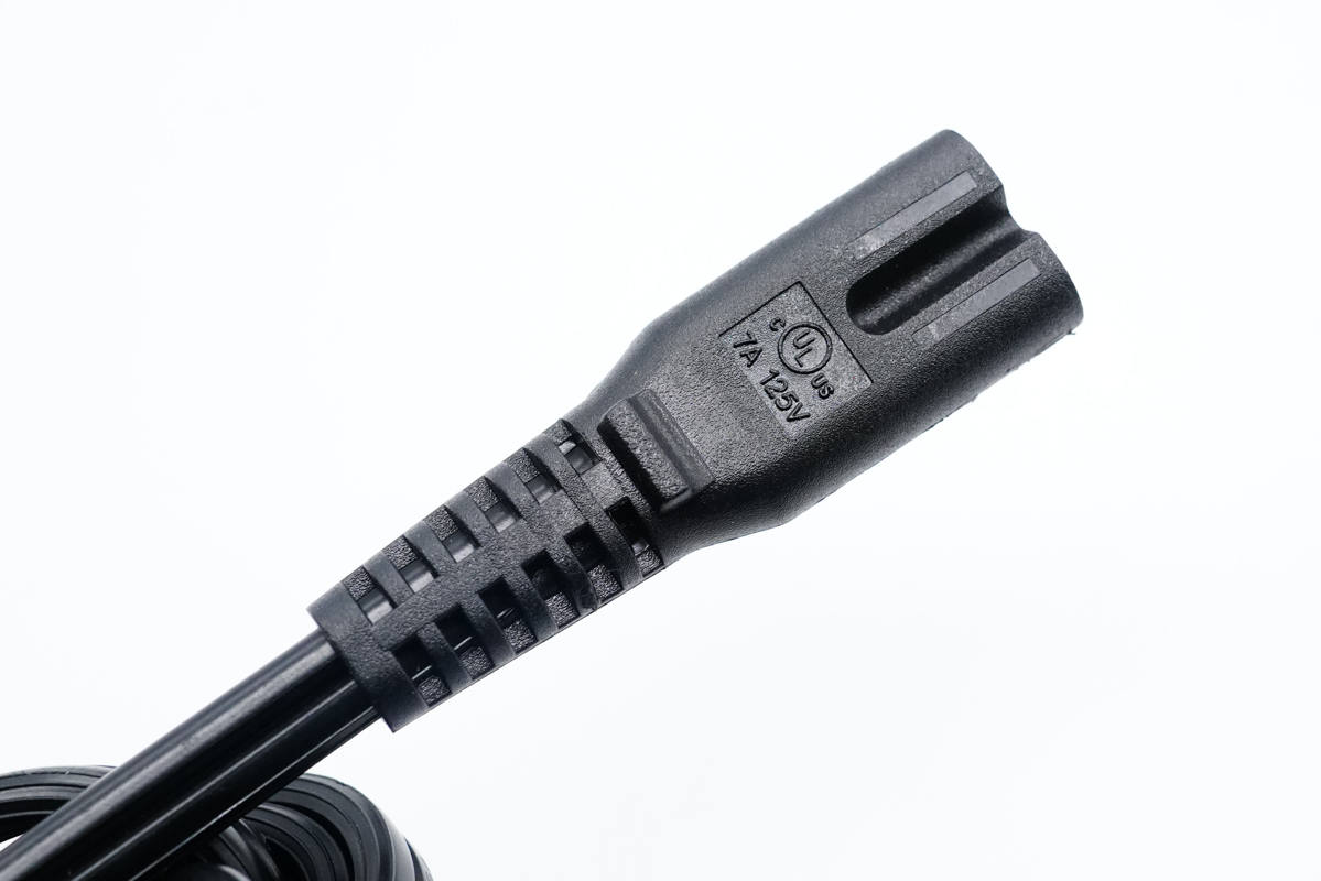 線纜兩端做了抗彎折處理,這一端設(shè)有凸齒,方便插拔。另外線纜規(guī)格為7A 125V,且通過了UL認(rèn)證。