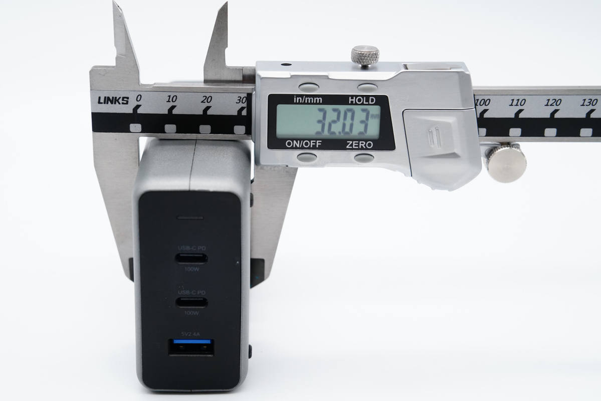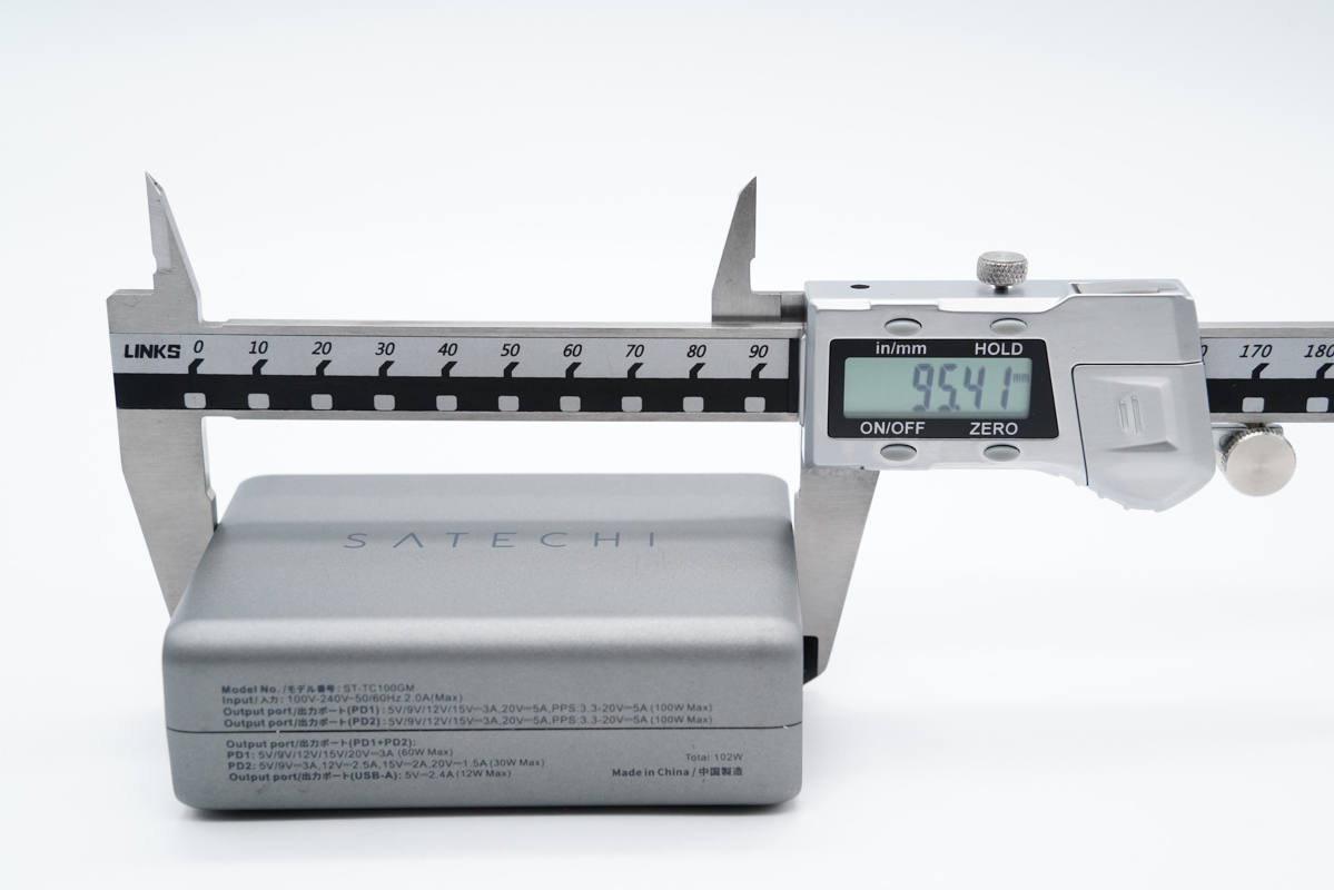 和蘋果96W充電器直觀對比,稍長也稍窄一些。
