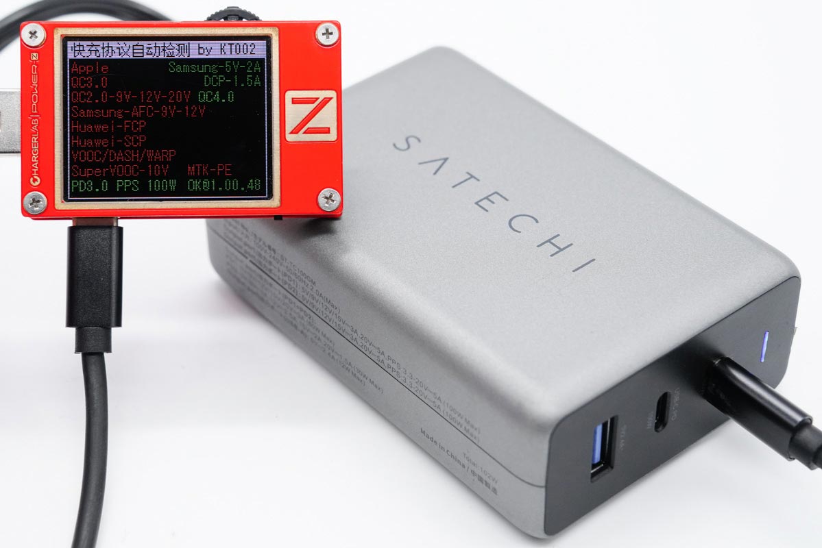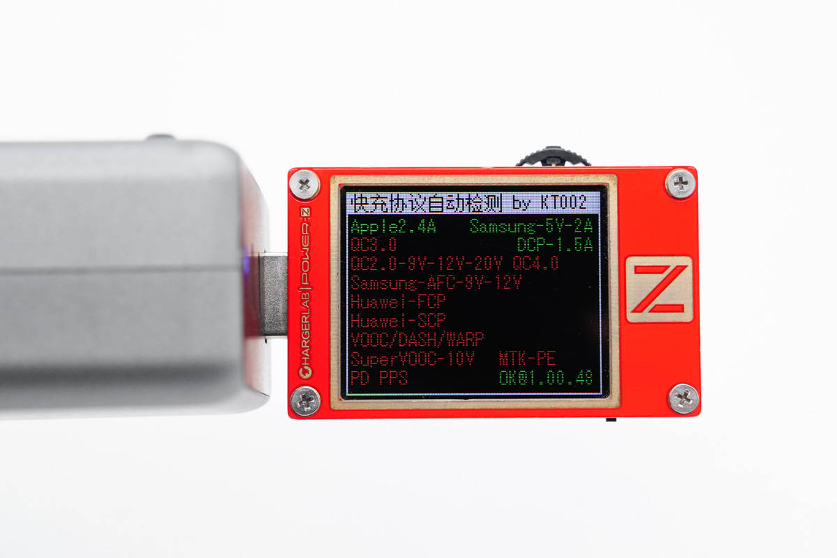 使用KT002測得USB-C1口支持Samsung 5V2A、DCP協(xié)議,以及QC4.0、PD3.0和PPS快充協(xié)議。