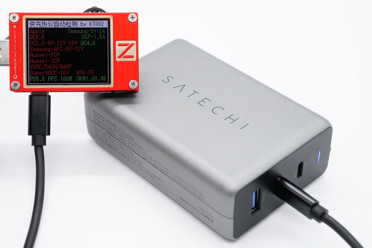 使用ChargerLAB POWER-Z KT002測得USB-A口支持Apple 2.4A、Samsung 5V2A和DCP協(xié)議。
