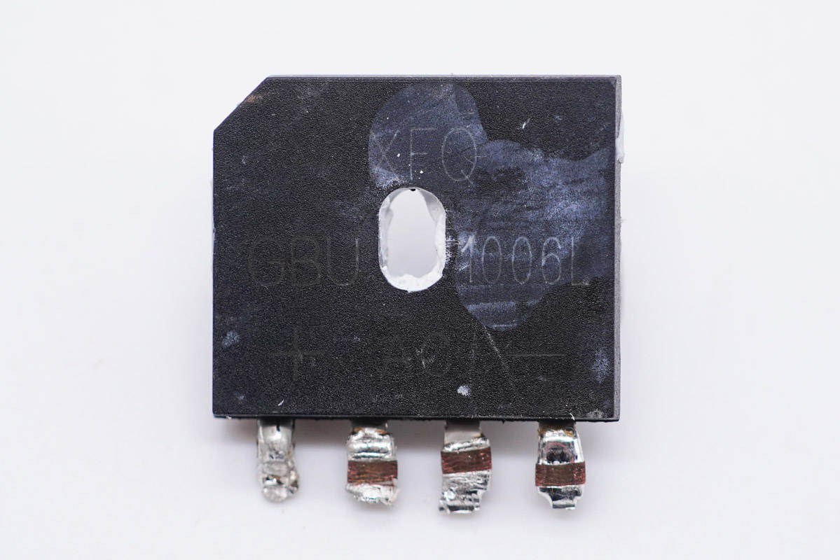 整流橋特寫,GBU1006L,額定電流10A。