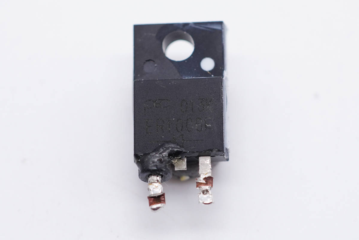 PFC升壓整流管特寫,絲印ER1006F,600V10A快恢復(fù)二極管。