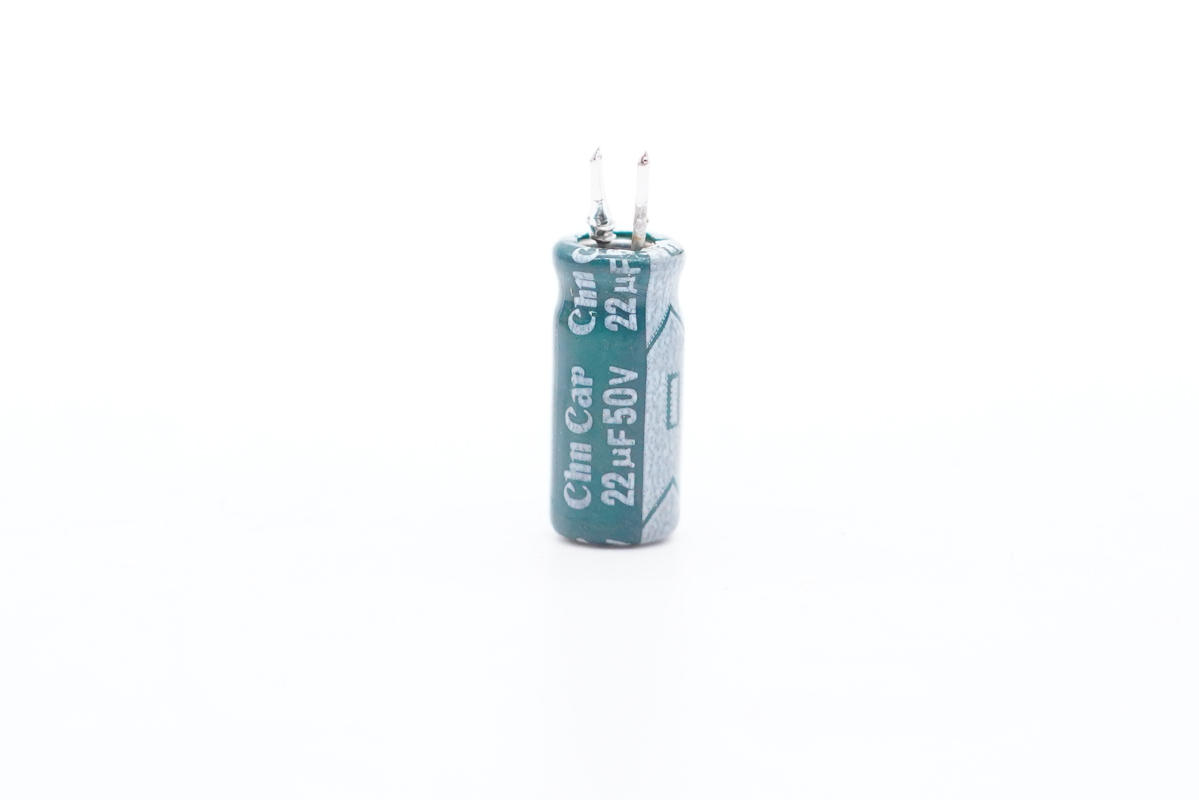 充電器主控芯片供電電容特寫,規(guī)格為50V 22μF。