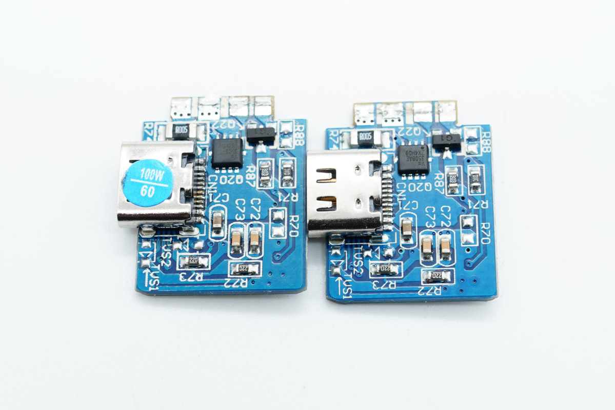 兩個C口所在小板設(shè)計一模一樣,背面設(shè)有協(xié)議芯片。