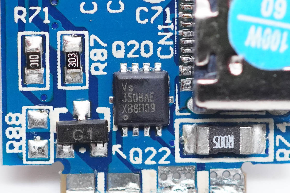 輸出VBUS開關(guān)管也是采用威兆VS3508AE,右下角R005是輸出檢流電阻。