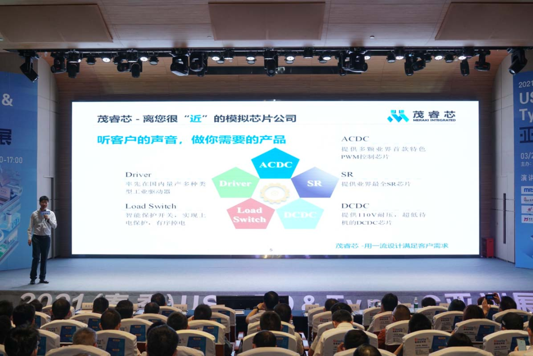 據介紹,茂睿芯致力于用一流設計滿足客戶需求,目前可以提供多種類的工業驅動器;可實現上電保護,有序掉電的智能負載開關;110V耐壓、超低待機功耗的DC-DC;業界最全的同步整流芯片,以及在AC-DC方面有諸多特色的PWM控制芯片。