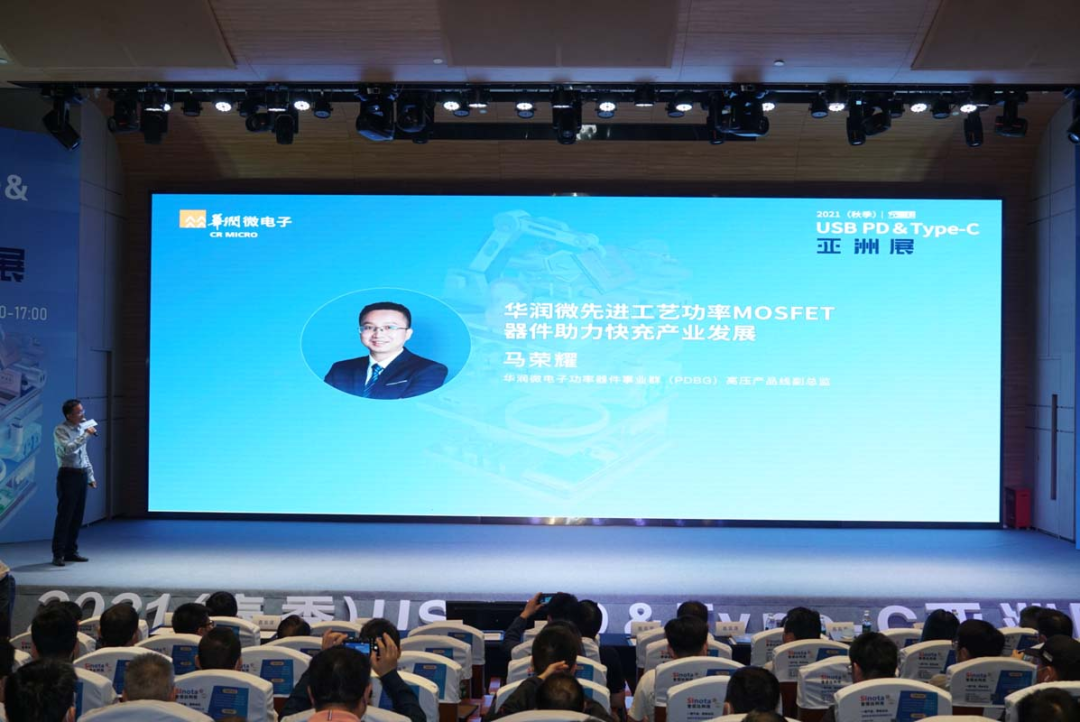 華潤微電子功率器件事業群(PDBG)高壓產品線副總監馬榮耀先生在本次大會上發表了《華潤微先進工藝功率MOSFET器件助力快充產業發展》主題演講。