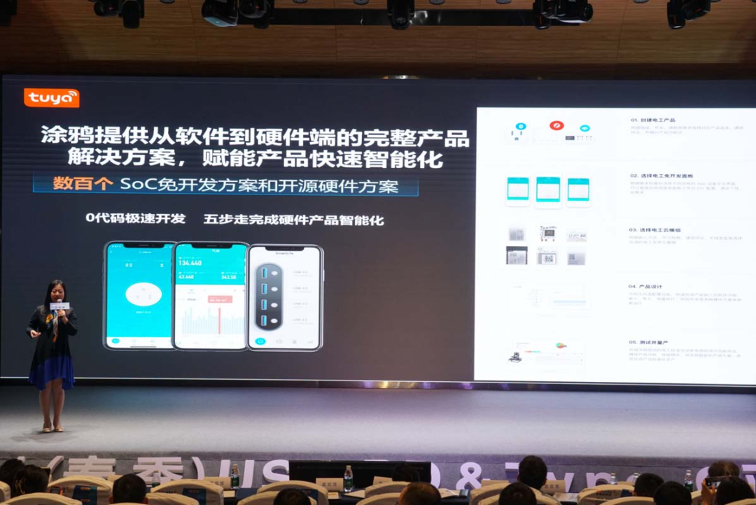 劉瑞涵女士介紹到,涂鴉智能是全球化AI+IoT領軍企業,連接消費者、制造品牌、OEM廠商和連鎖零售商的智能化需求,為開發者提供一站式人工智能物聯網的PaaS級解決方案。并且涵蓋了硬件開發工具、全球云、智慧商業平臺開發三方面,提供從技術到營銷渠道的全面生態賦能,打造世界領先的IoT云平臺。