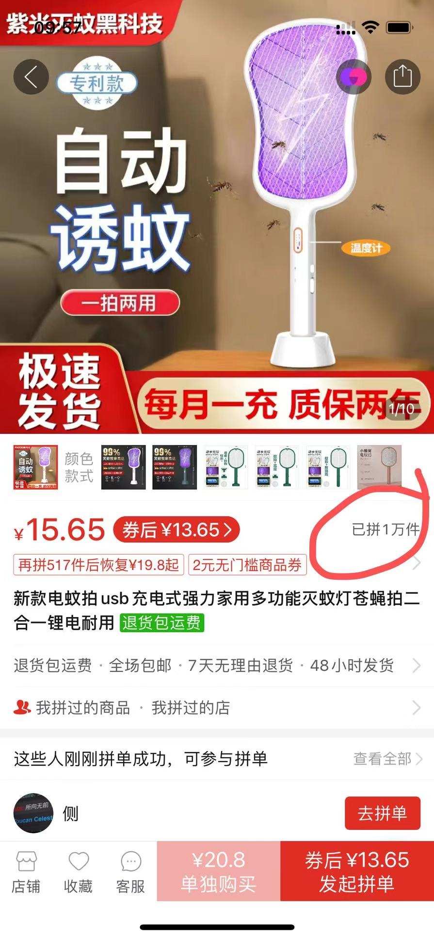 第一款品牌未知,商家是創(chuàng)美達(dá),已拼超過(guò)10萬(wàn)件。