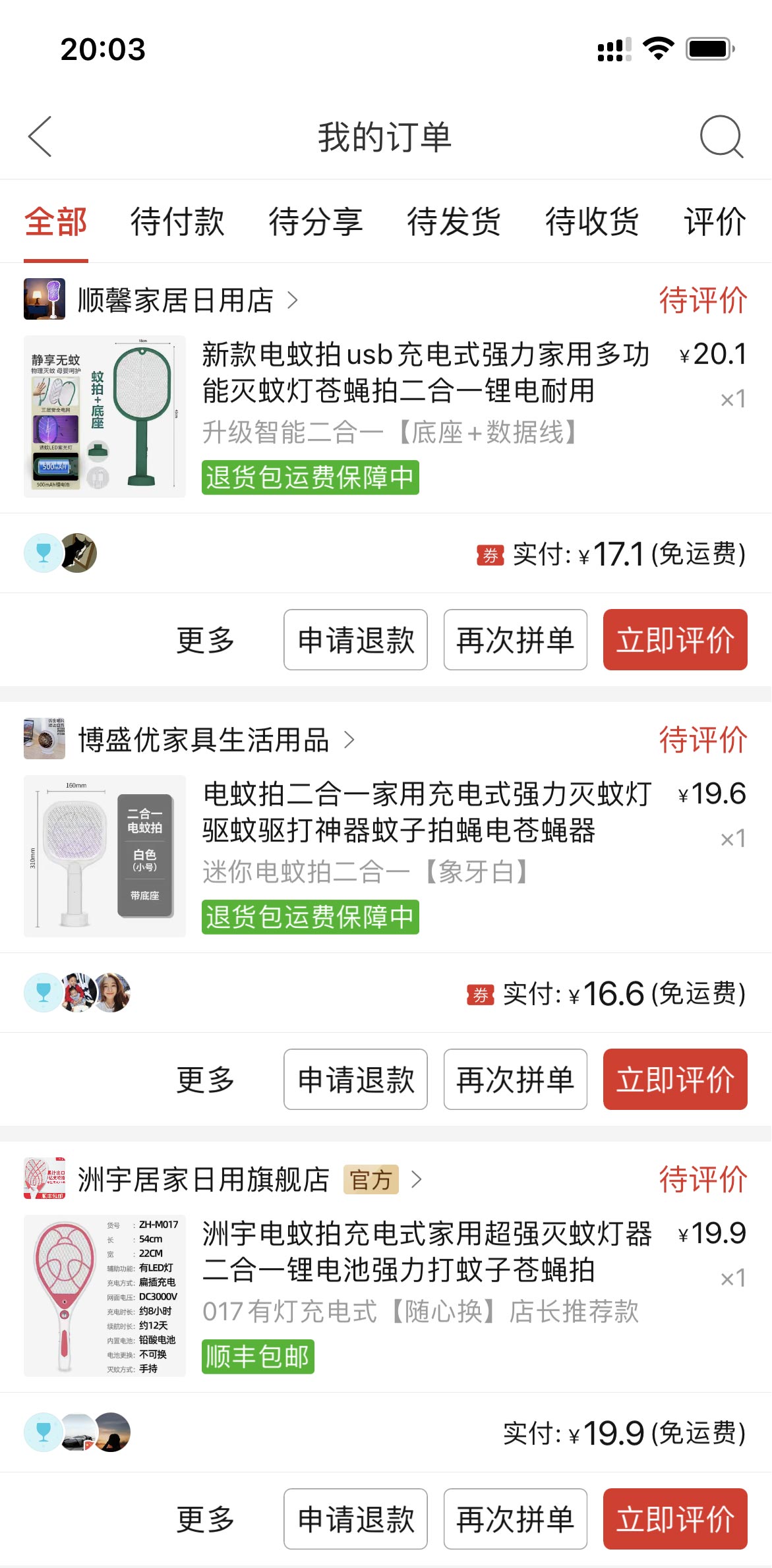 五款電蚊拍在各種優(yōu)惠券下都能以低于20元的價(jià)格入手,而且全部包郵。