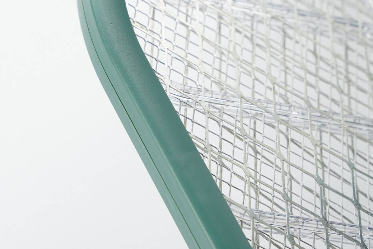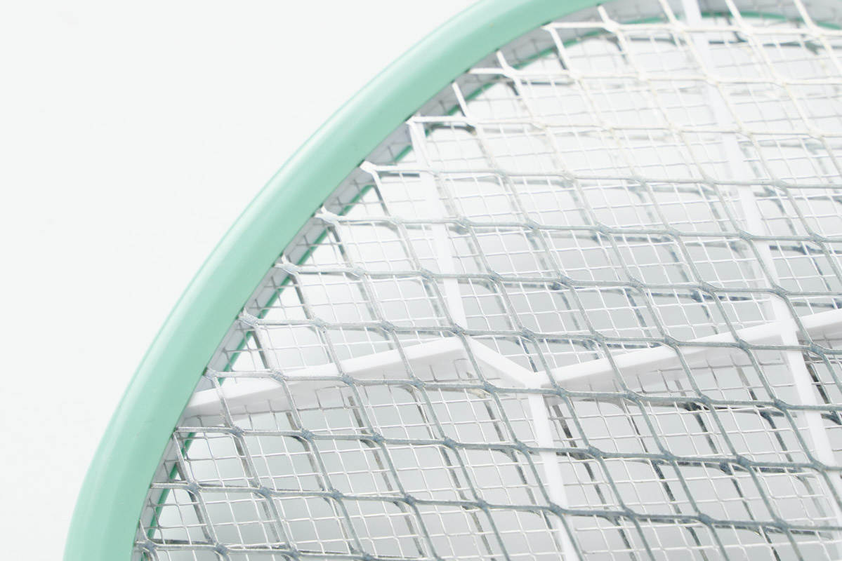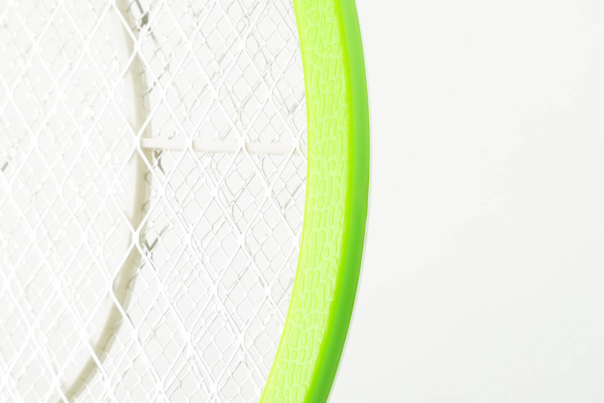 第四款采用淺綠色亮面塑料外殼,把手為圓柱設(shè)計(jì),配有LED充電指示燈、照明燈、開關(guān)鍵、通電鍵。網(wǎng)拍為平頭,是很經(jīng)典的造型設(shè)計(jì)。