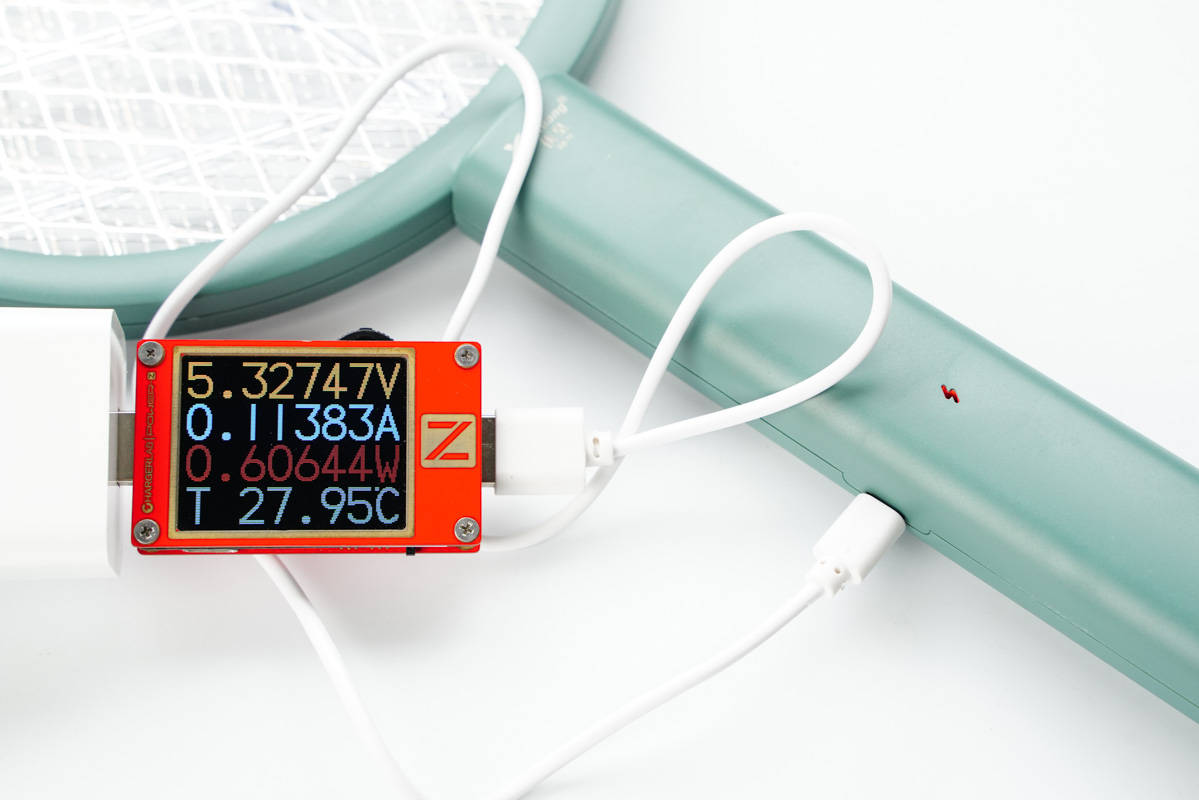 實(shí)測(cè)第一款電蚊拍充電功率為0.72W。