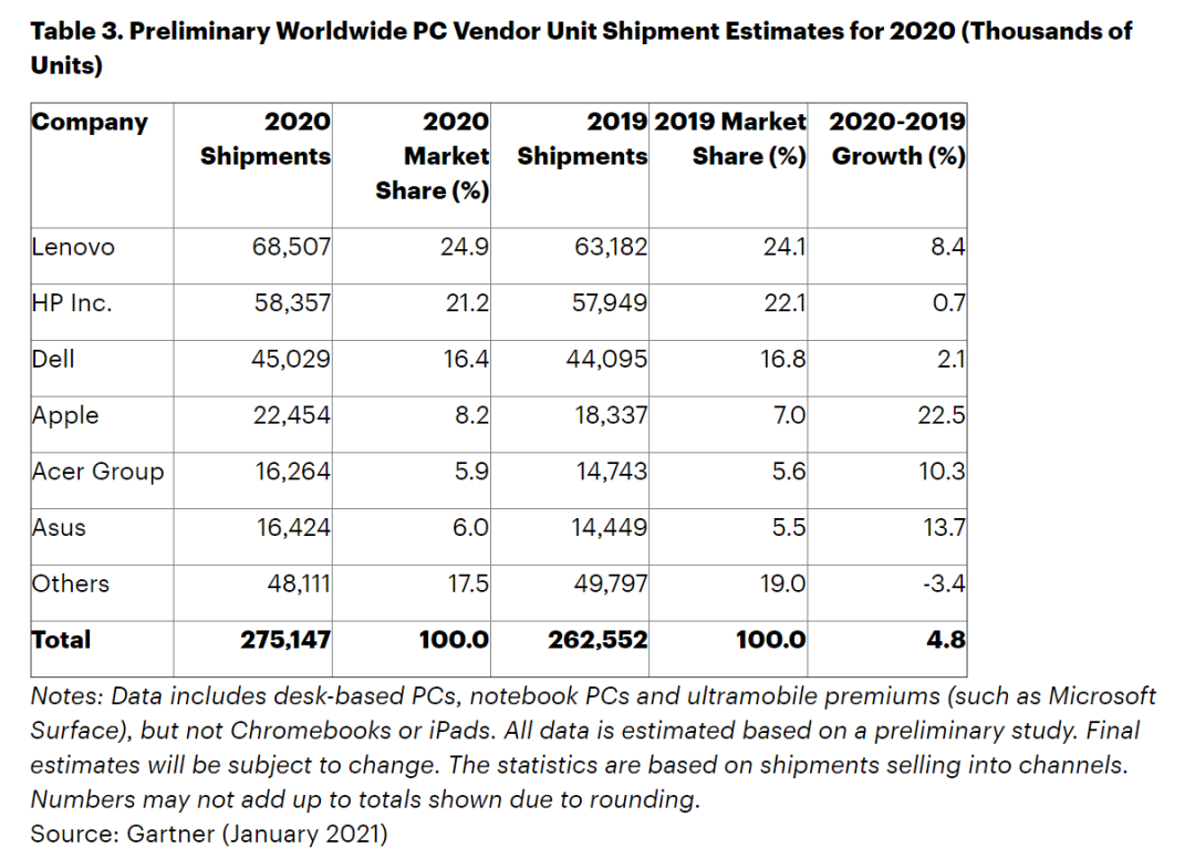 據Gartner統計,2020年全球PC出貨量同比增長4.8%至2.75億臺,為十年來最高增幅。加上以往出貨量,全球至少有數十億臺電腦保有量。而這些個人電腦內置的PC電源,也都有升級為氮化鎵功率器件的潛力。