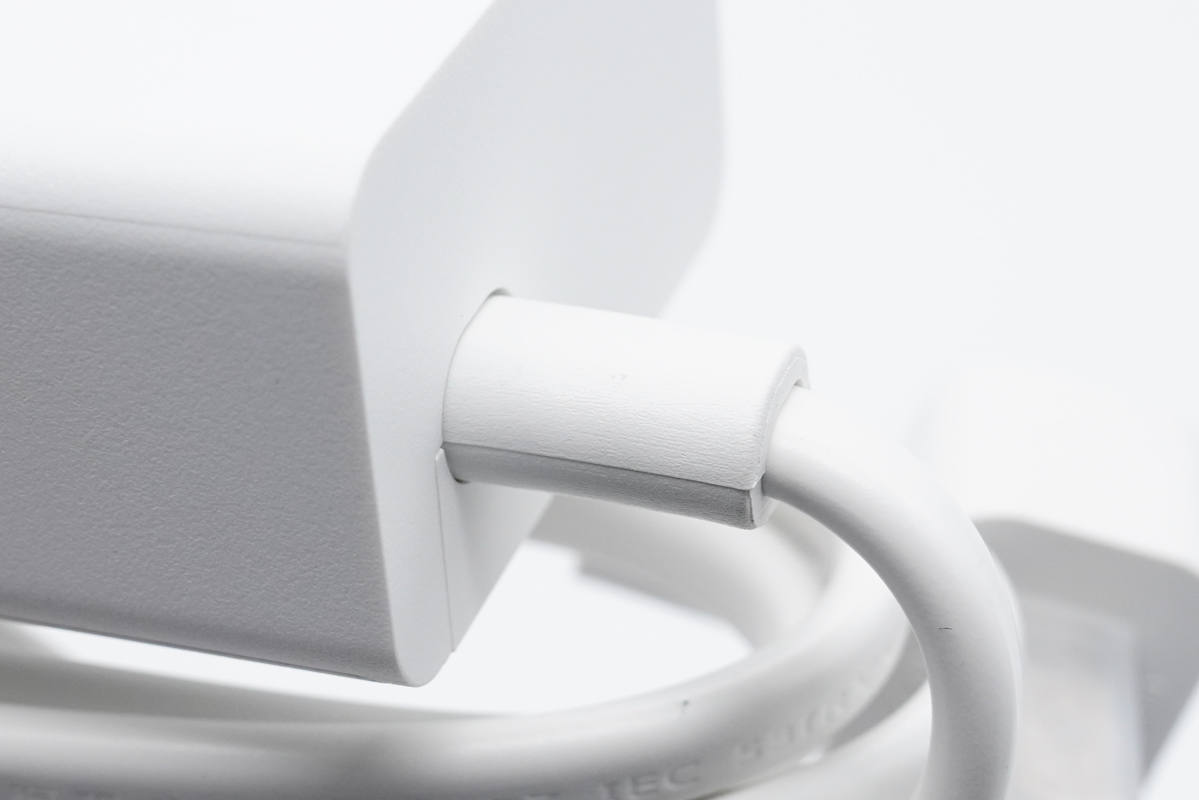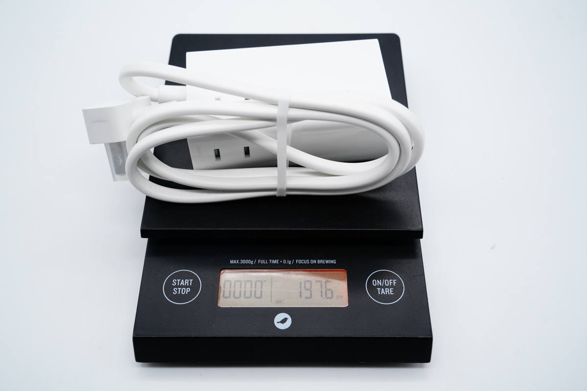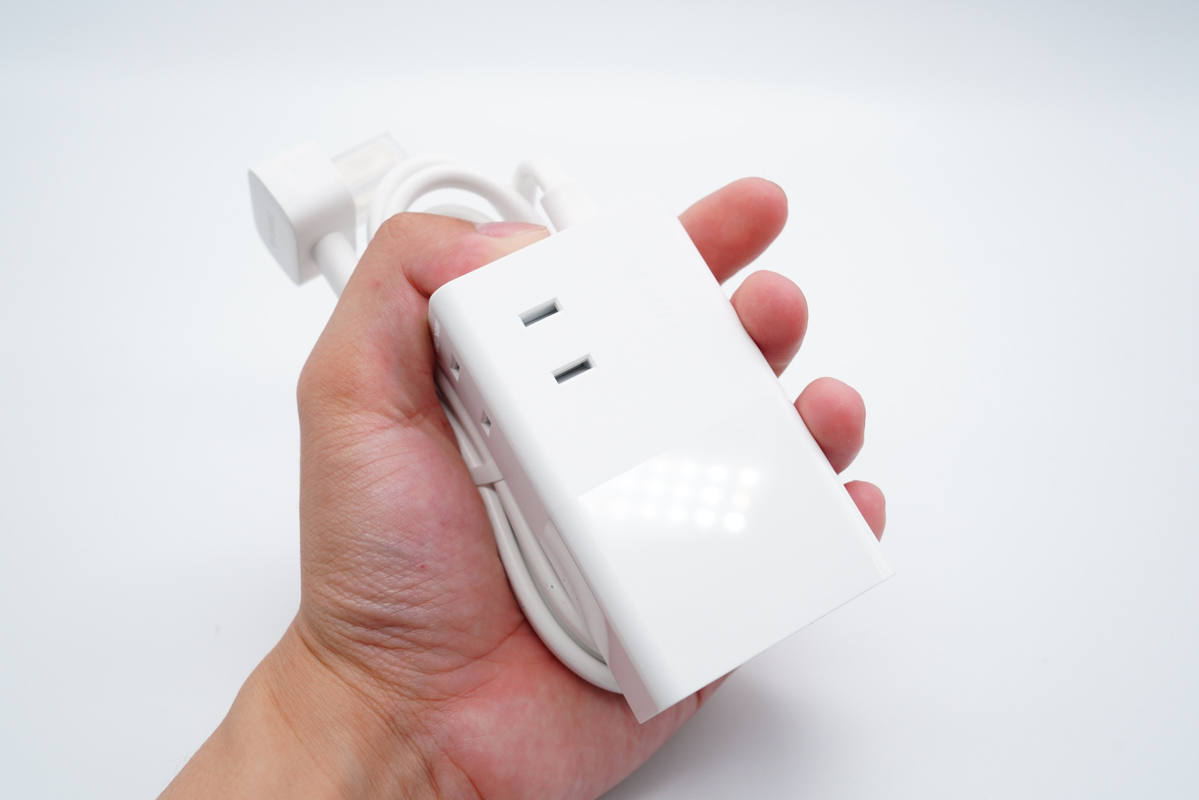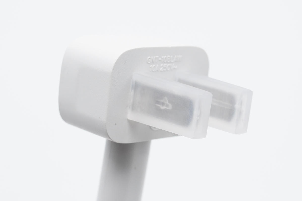 兩組AC插孔采用一體銅片設計,充電器模塊外套白色塑料殼。