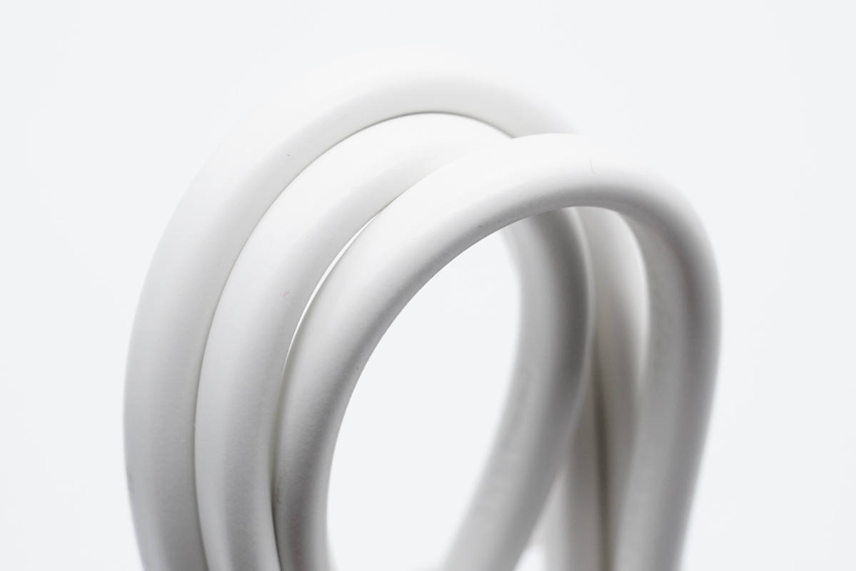 插座自帶雙腳插頭電源線,使用橡膠圈捆扎整理。