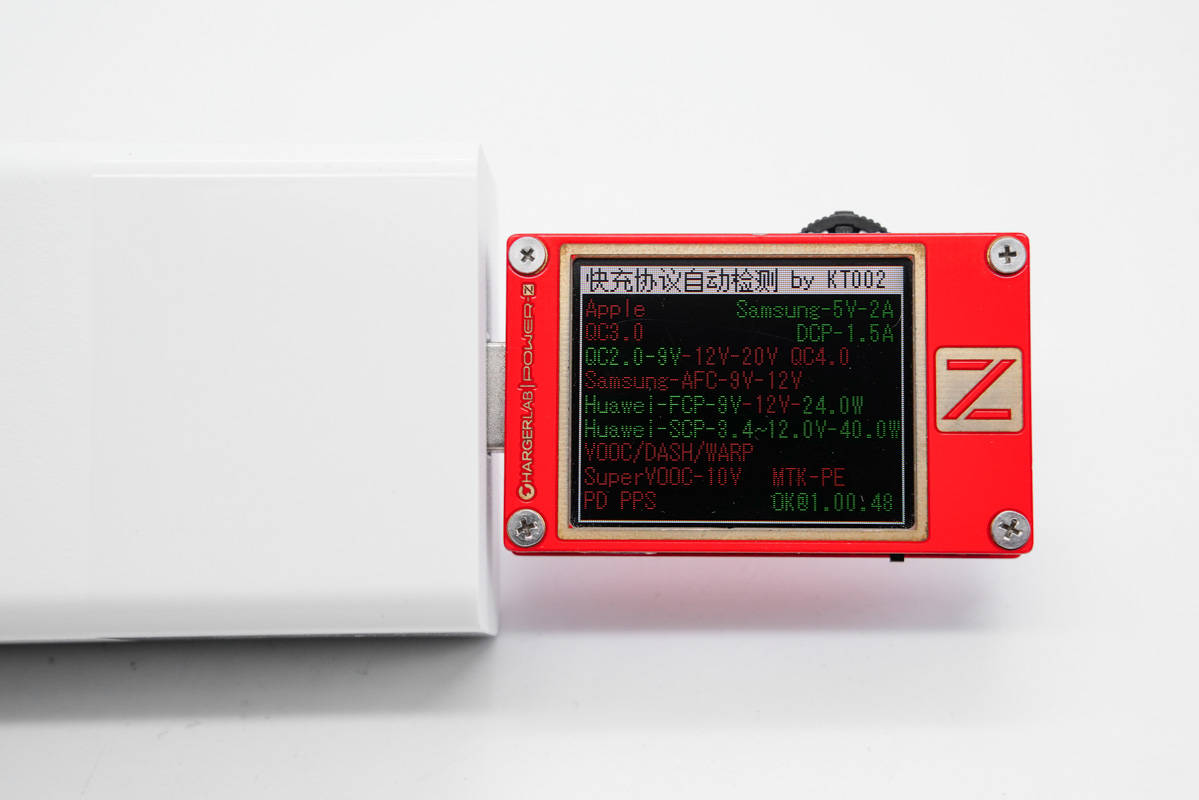 使用ChargerLAB POWER-Z KT002測得USB-A口支持Samsung 5V2A、DCP協議,以及QC2.0、FCP、SCP快充協議。