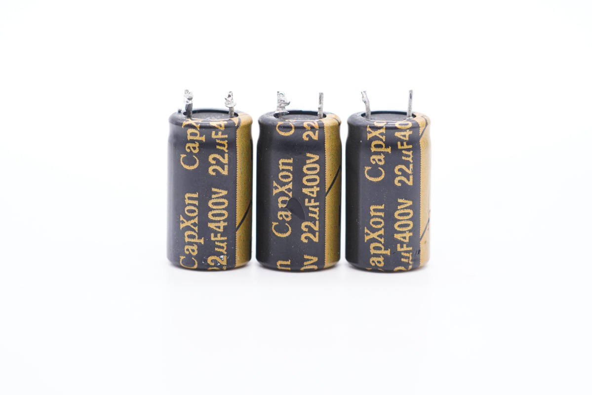三顆高壓濾波電解電容均來自CapXon豐賓,且規格相同都是400V 22μF。