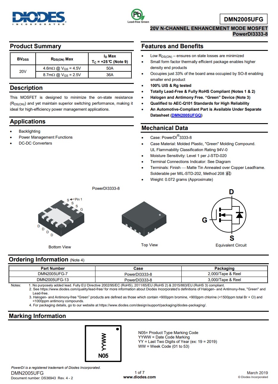 輸出VBUS開關管特寫,DIODES DMN2005UFG,NMOS,耐壓20V。