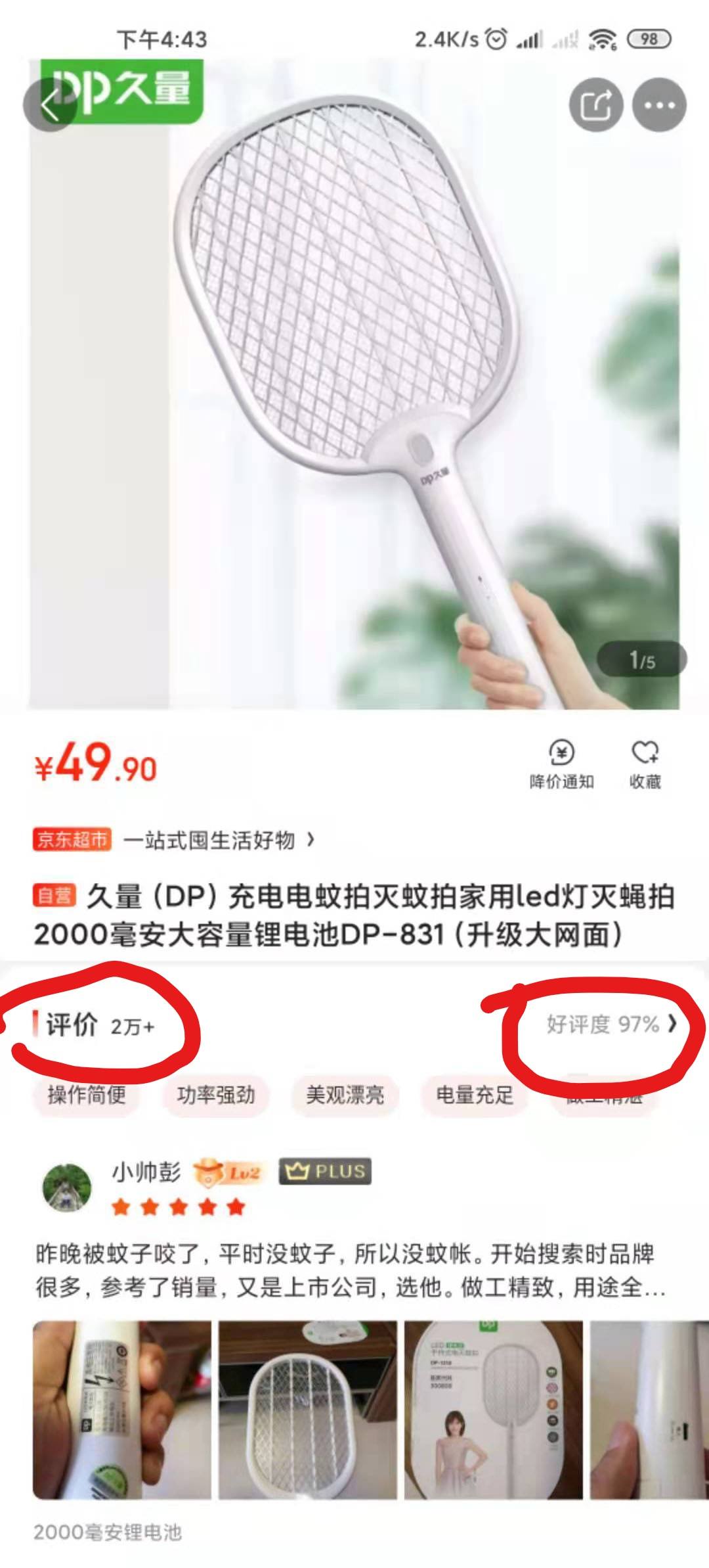 小結(jié):五款電蚊拍均來自京東商城,整體好評度都超過95%,質(zhì)量有保障。