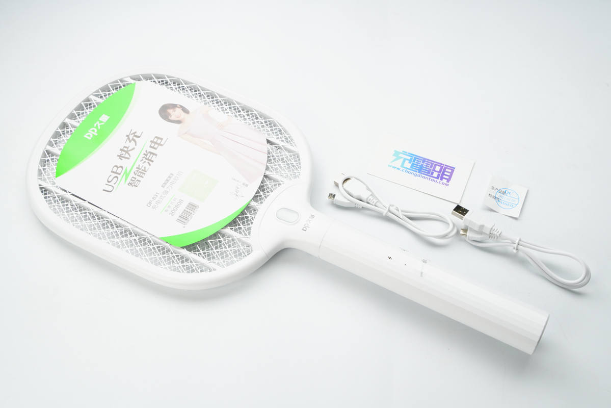 久量電蚊拍配有兩條充電數(shù)據(jù)線,自身采用白色外殼,網(wǎng)拍為賽道造型,把手為羅馬柱設(shè)計,持握手感好。電蚊拍配有開關(guān)鍵、電源鍵、指示燈、照明燈以及充電接口等。