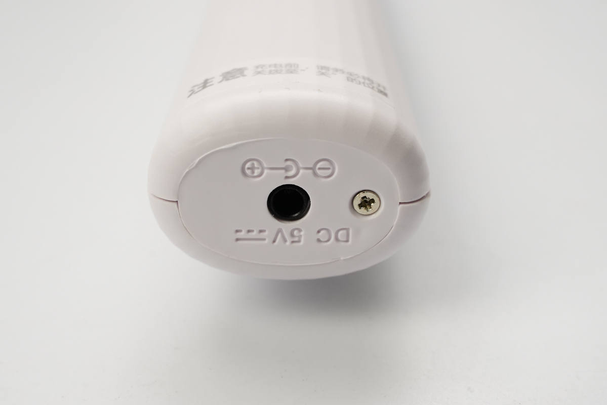 質(zhì)零電蚊拍配有一個DC輸入口,將電蚊拍插在底座上充電,底座自帶一個USB-A輸入線纜。