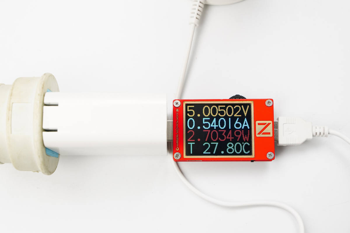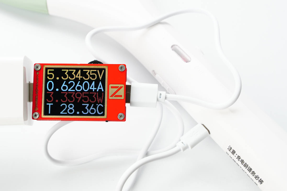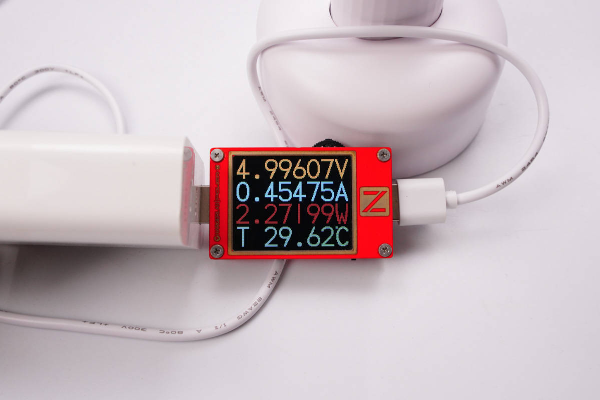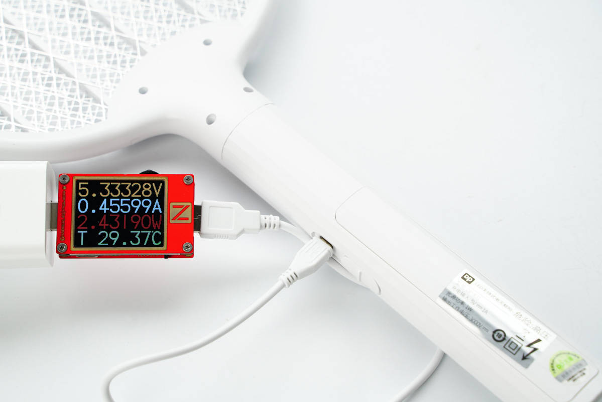 使用ChargerLAB POWER-Z KT002測得質(zhì)零電蚊拍充電輸入功率為2.27W。