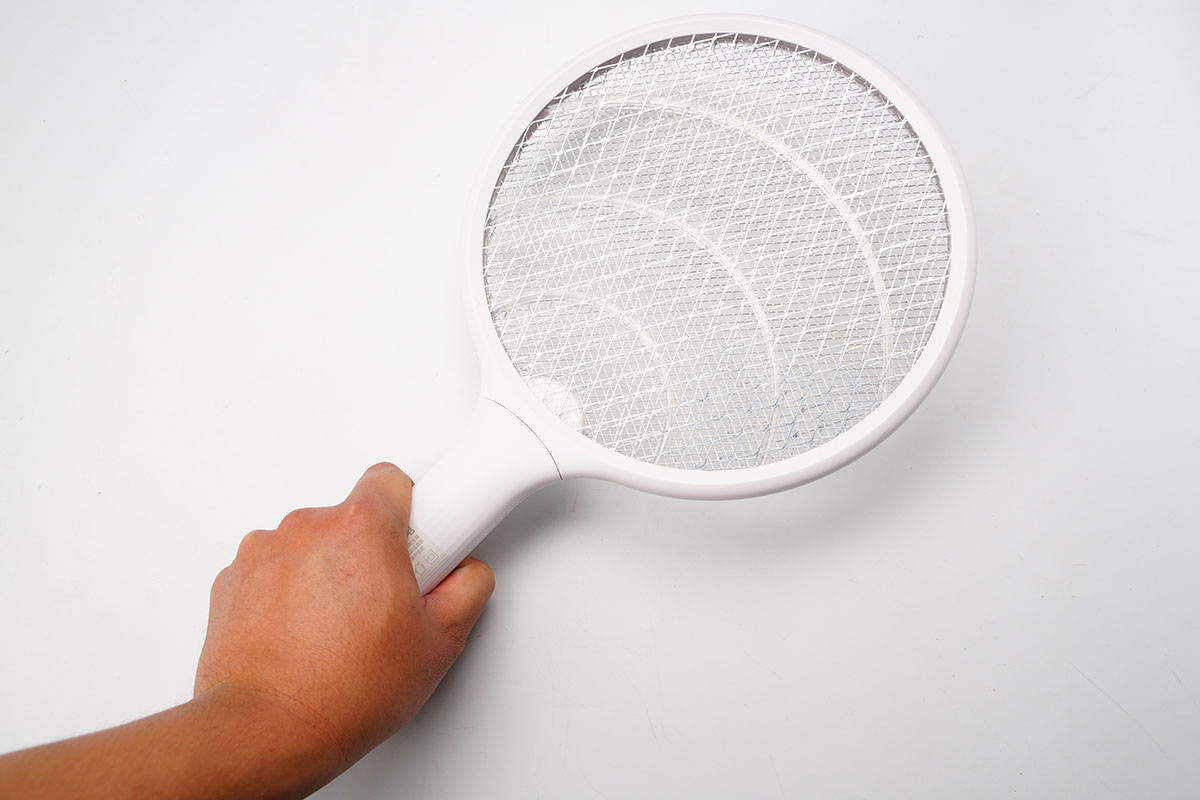 質(zhì)零電蚊拍整體尺寸是五款中最小的,拿在手上很輕便,網(wǎng)拍實際上比較大。