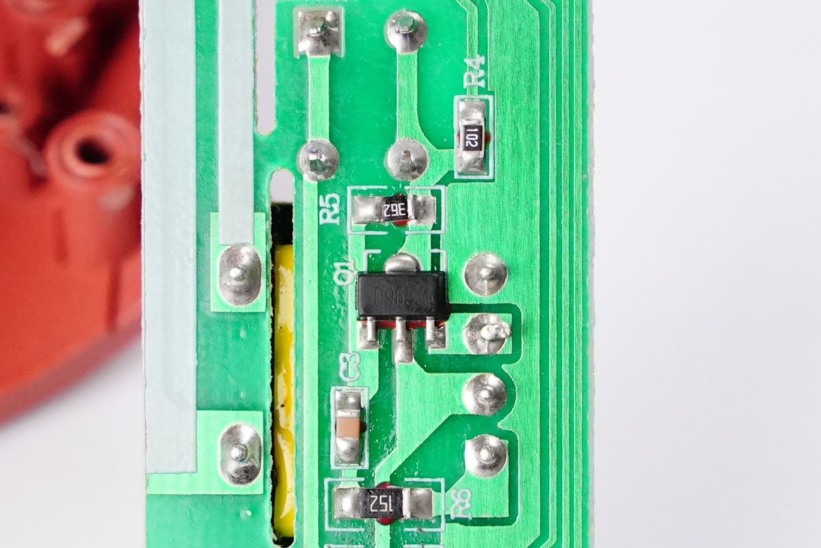素樂電蚊拍電路板采用D965貼片升壓三極管。