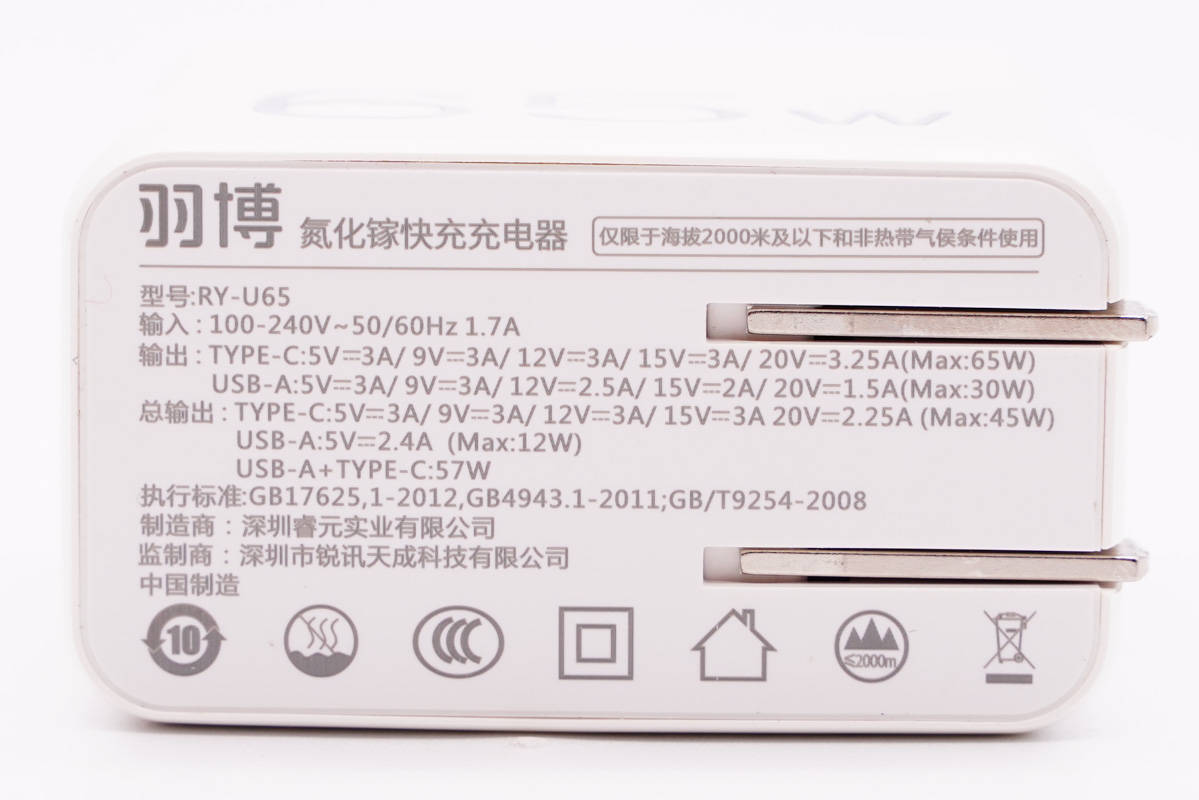 最近充電頭網(wǎng)拿到了YOOBAO羽博旗下首款65W氮化鎵快充充電器,這款充電器配備市面熱門的1A1C接口,分別支持30W和65W輸出,雙口同時使用的情況下,總輸出功率為57W,可以滿足筆電和手機(jī)日常充電需求。下面小編就和大家分享這款充電器的拆解,看看里面用料如何。