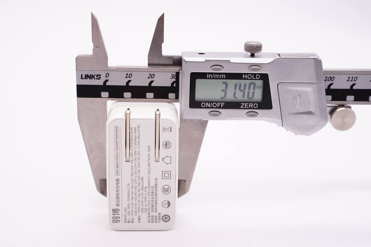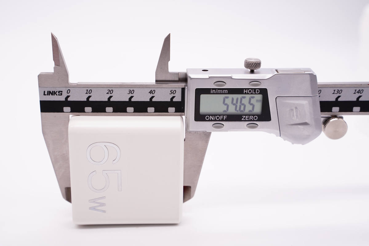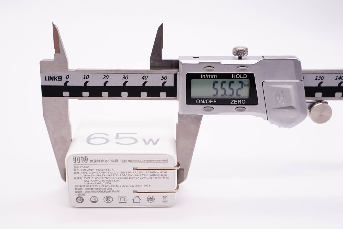 使用游標(biāo)卡尺實(shí)測充電器機(jī)身高度為54.65mm。