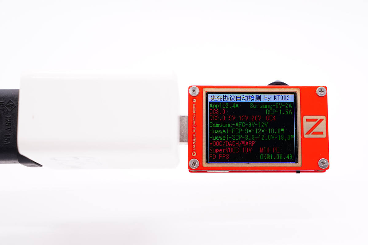 另外使用KT002測得USB-C口支持Apple 2.4A、Samsung 5V2A、DCP協(xié)議,以及FCP、SCP、PD3.0、PPS快充協(xié)議。