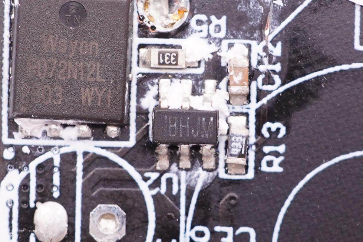 輸出VBUS開關(guān)管特寫,絲印CWT3121AP。